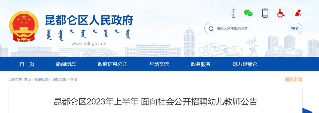 昆都仑区2023年上半年面向社会公开招聘幼儿教师公告