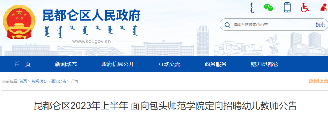 昆都仑区2023年上半年面向包头师范学院定向招聘幼儿教师公告