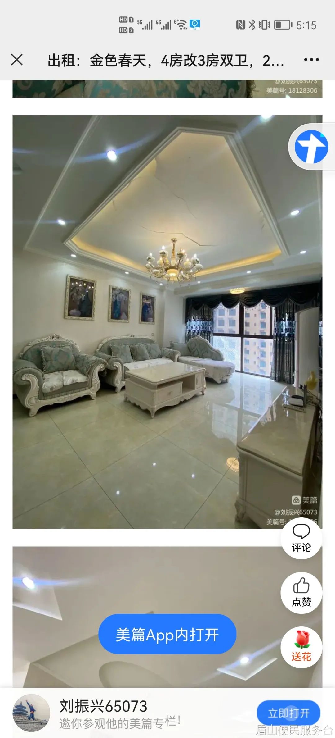 详细地址:眉山东坡区财富中心B座401
