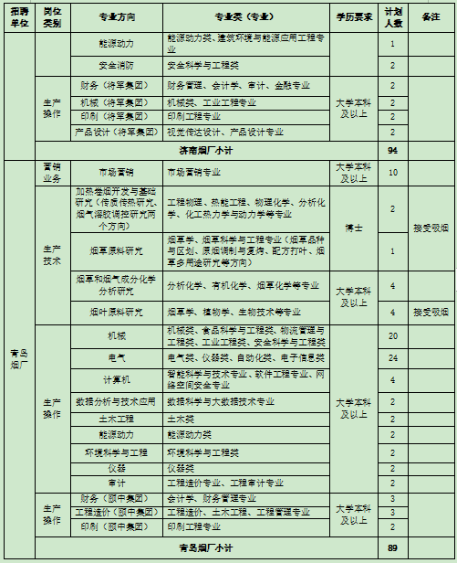 具体详见《山东中烟工业有限责任公司2023年高校毕业生招聘计划表》(附件1)。