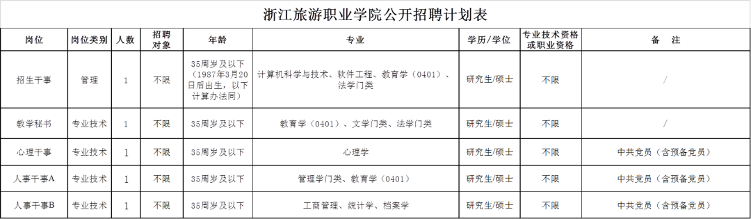 根据《浙江省事业单位公开招聘人员暂行办法》规定,浙江旅游职业学院拟面向社会公开招聘工作人员。现将有关事项公告如下: