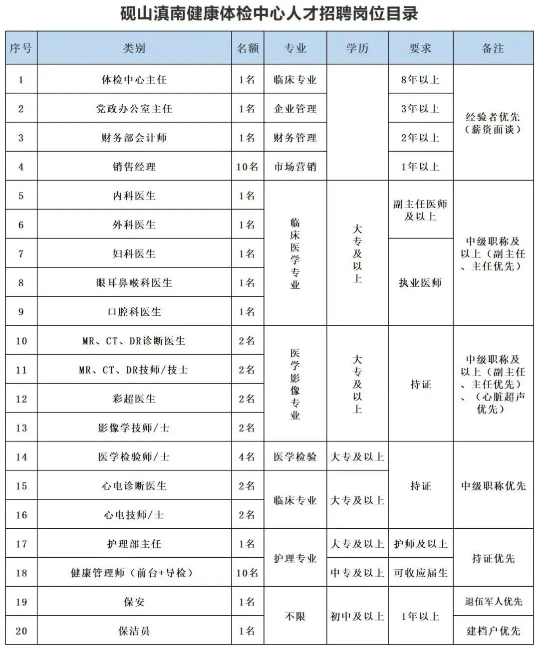 ● 面试地址:砚山县嘉禾三路七都国际商业广场三楼(砚山滇南健康体检中心)