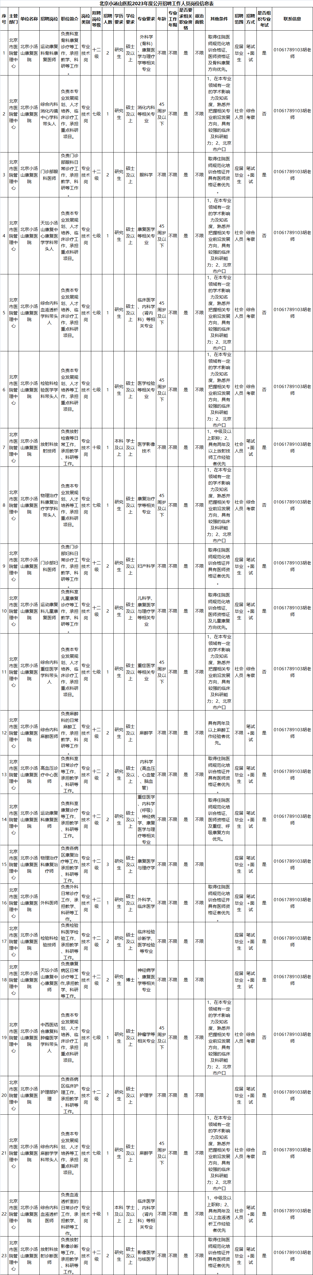 [北京] 北京小汤山医院,2023年招聘学科带头人、护士、康复医师、麻醉医师、外科医师、检验技师、放射诊断医师等人才