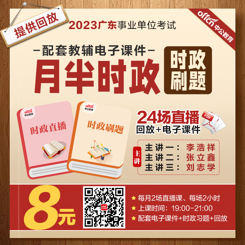 包含24场时政直播(无回放),每月2场直播课,每场2小时;还赠送23年全年电子课件+习题;主讲:李浩祥、张立鑫、刘志学;仅需0.1元,仅需0.1元;扫描下方二维码即可购买>>