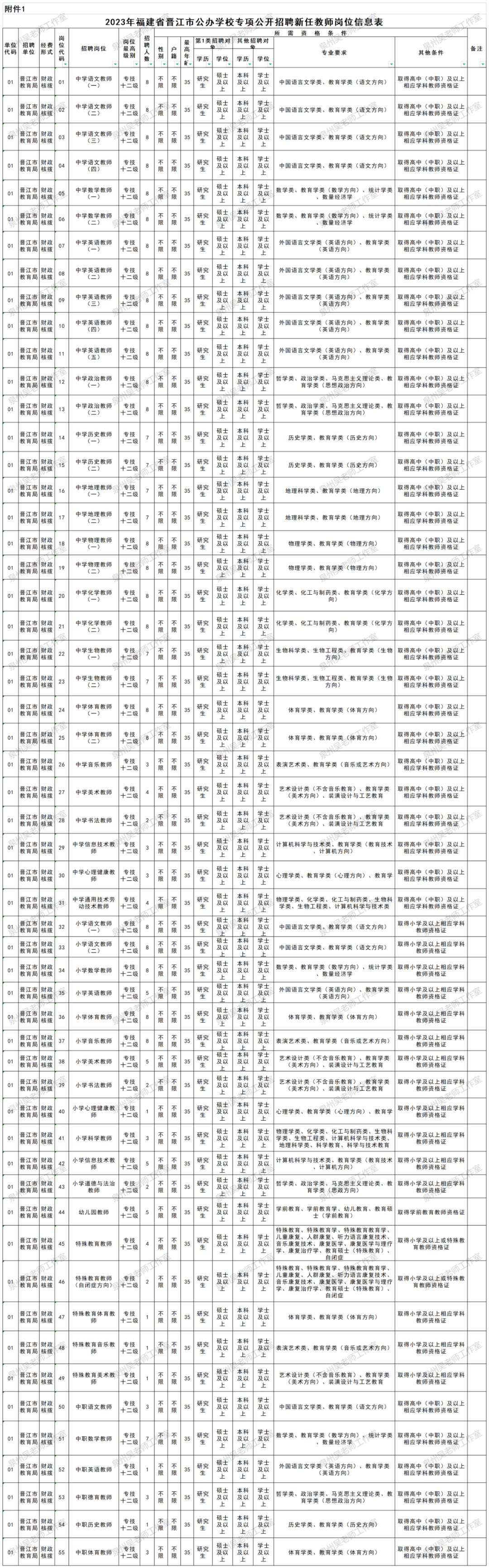 1.2023年晋江市公办学校专项公开招聘新任教师岗位信息表