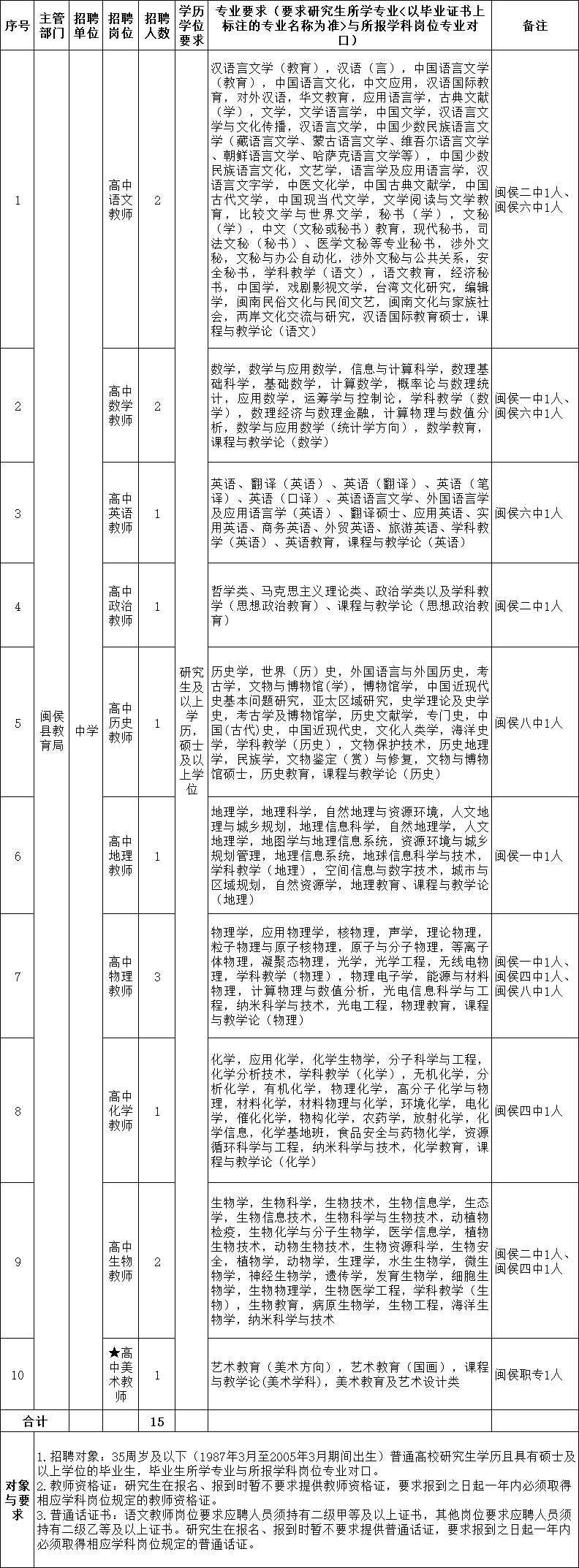 闽侯县教育局定于2023年3月举办研究生专场招聘会,招聘15名编制教师,现将有关事项公告如下: