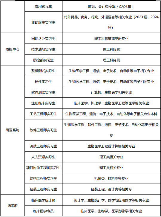 1、临床医学,护理学,生物医学工程等医学相关专业,大专或本科学历在校学生;