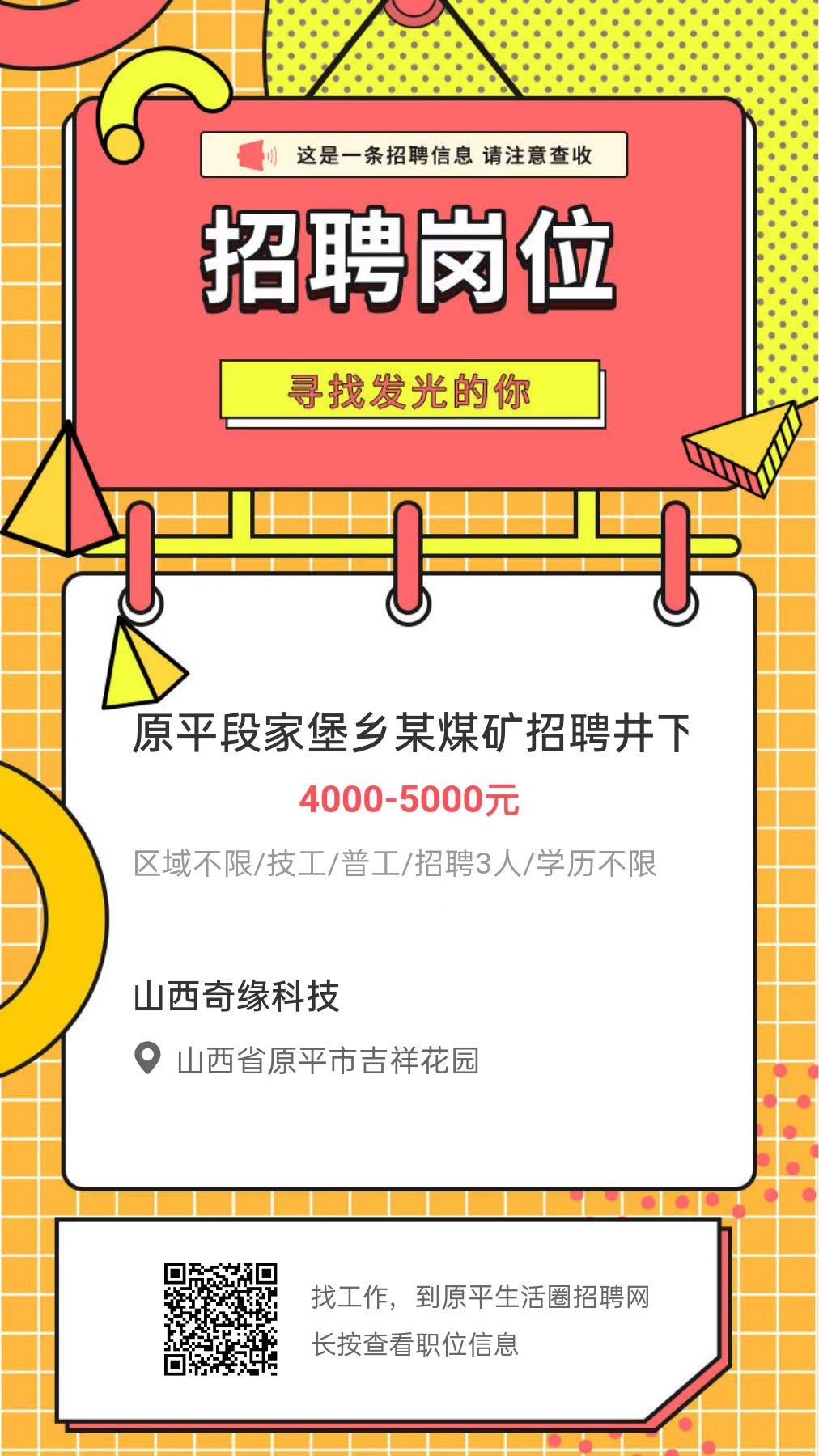 >【最新招聘】原平段家宝乡某煤矿招聘井下配电工3人、电工1人