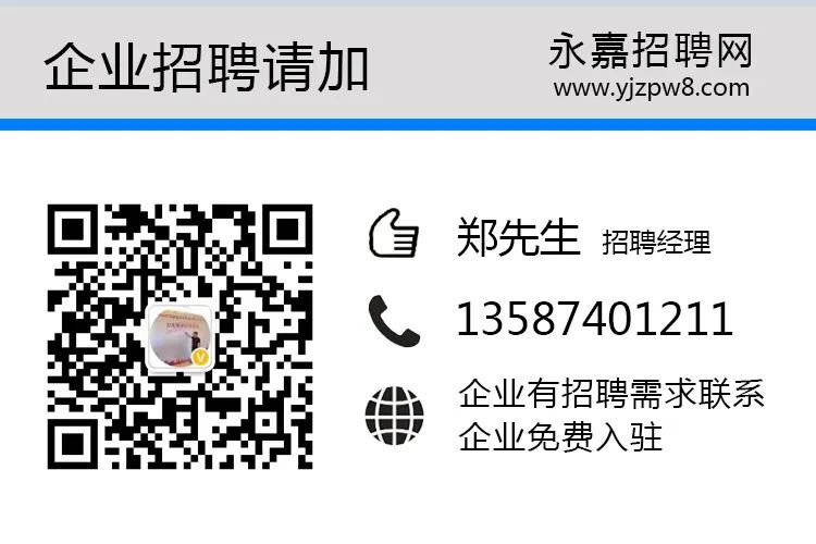 ↓↓↓点击关注获取永嘉招聘信息↓↓↓