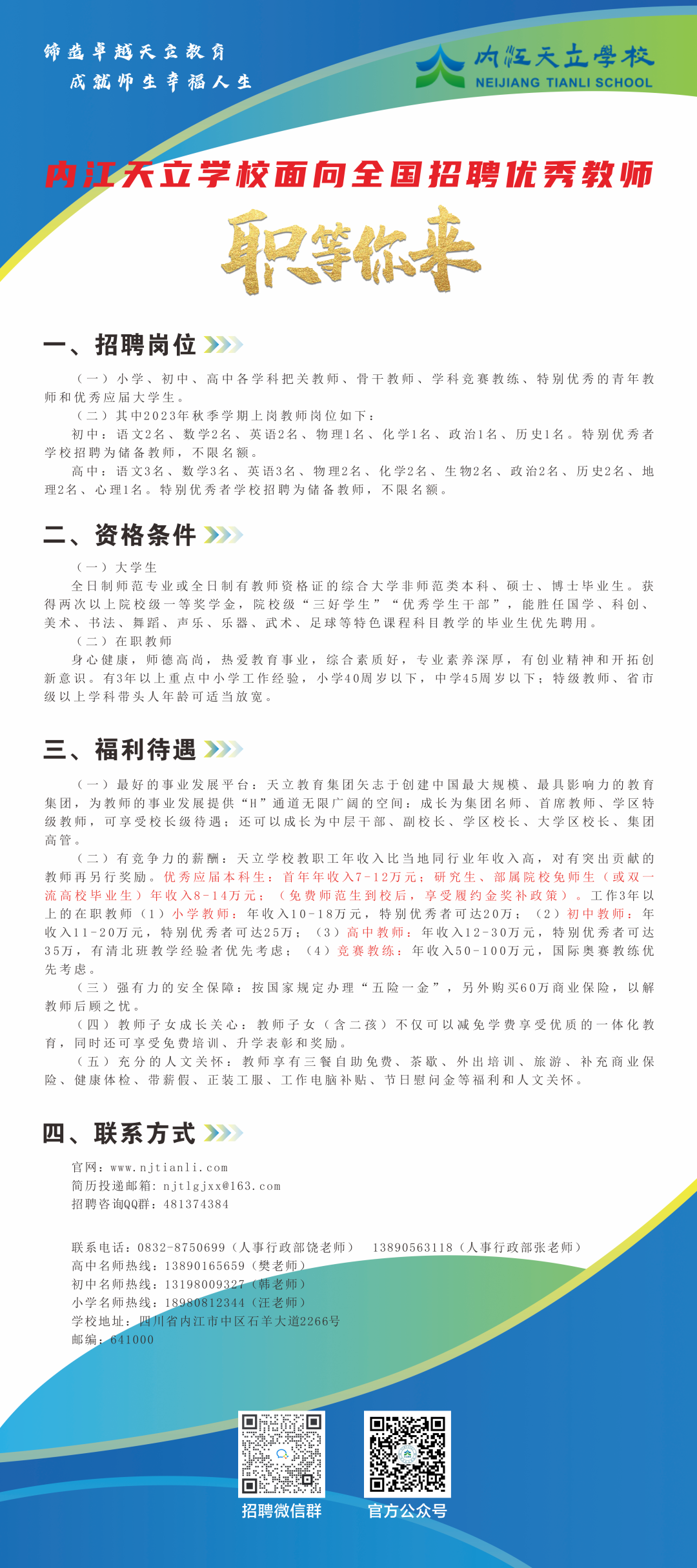 7.经验丰富的在职教师优先,特别优秀的应届毕业生亦可。