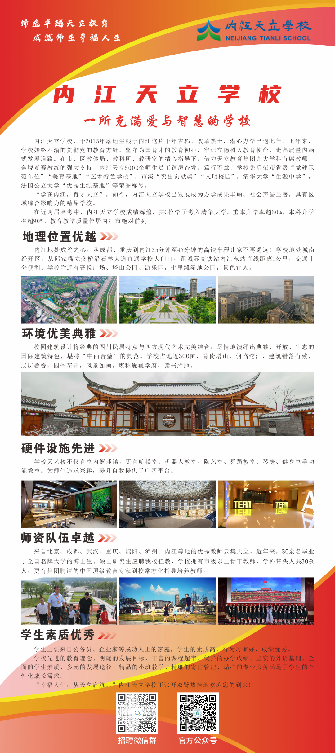 成都教师招聘,天府新区香山中学招聘小学、初高中教师及管理岗位!