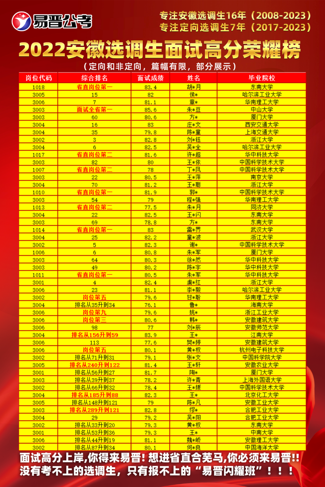 1.面试时间:2023年3月11日(星期六)下午,具体时间、地点会以微信群发信息的方式及时通知,请考生关注并按要求及时回复相关信息。