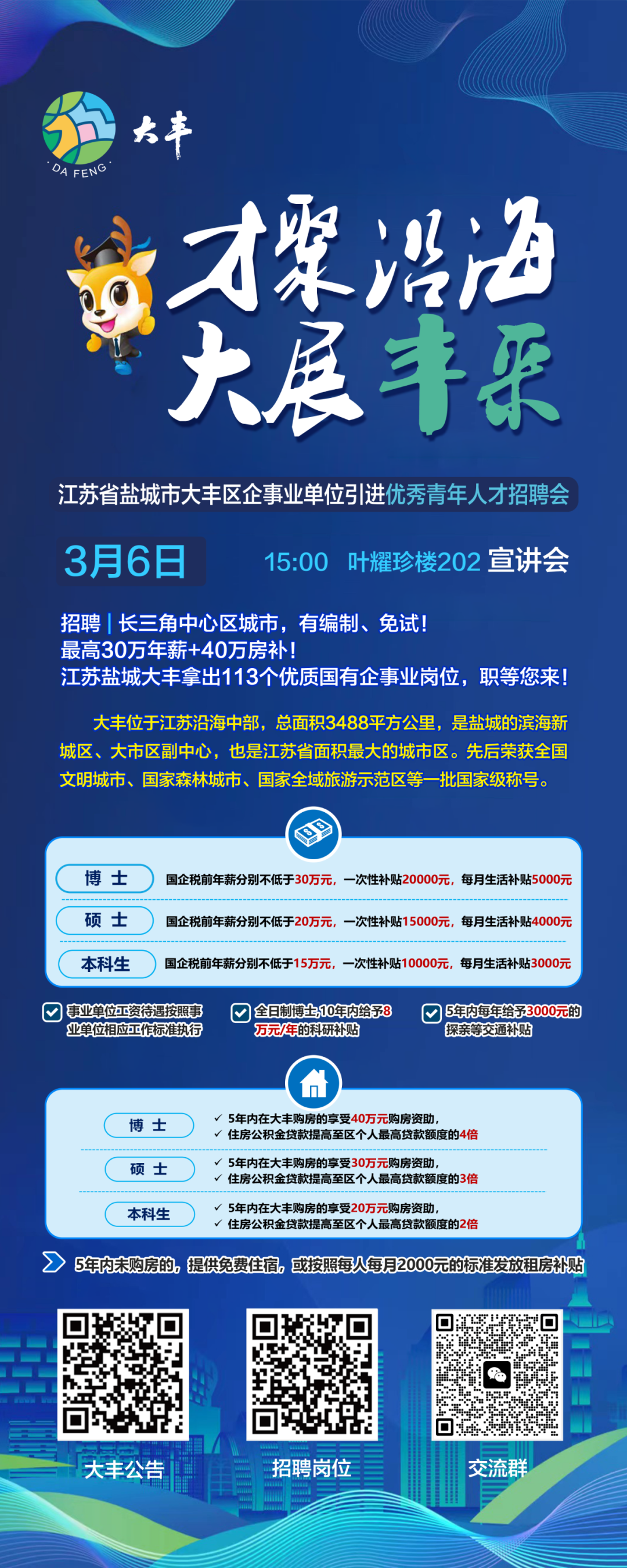 大丰区企事业单位共招聘113名,具体岗位要求见附件。