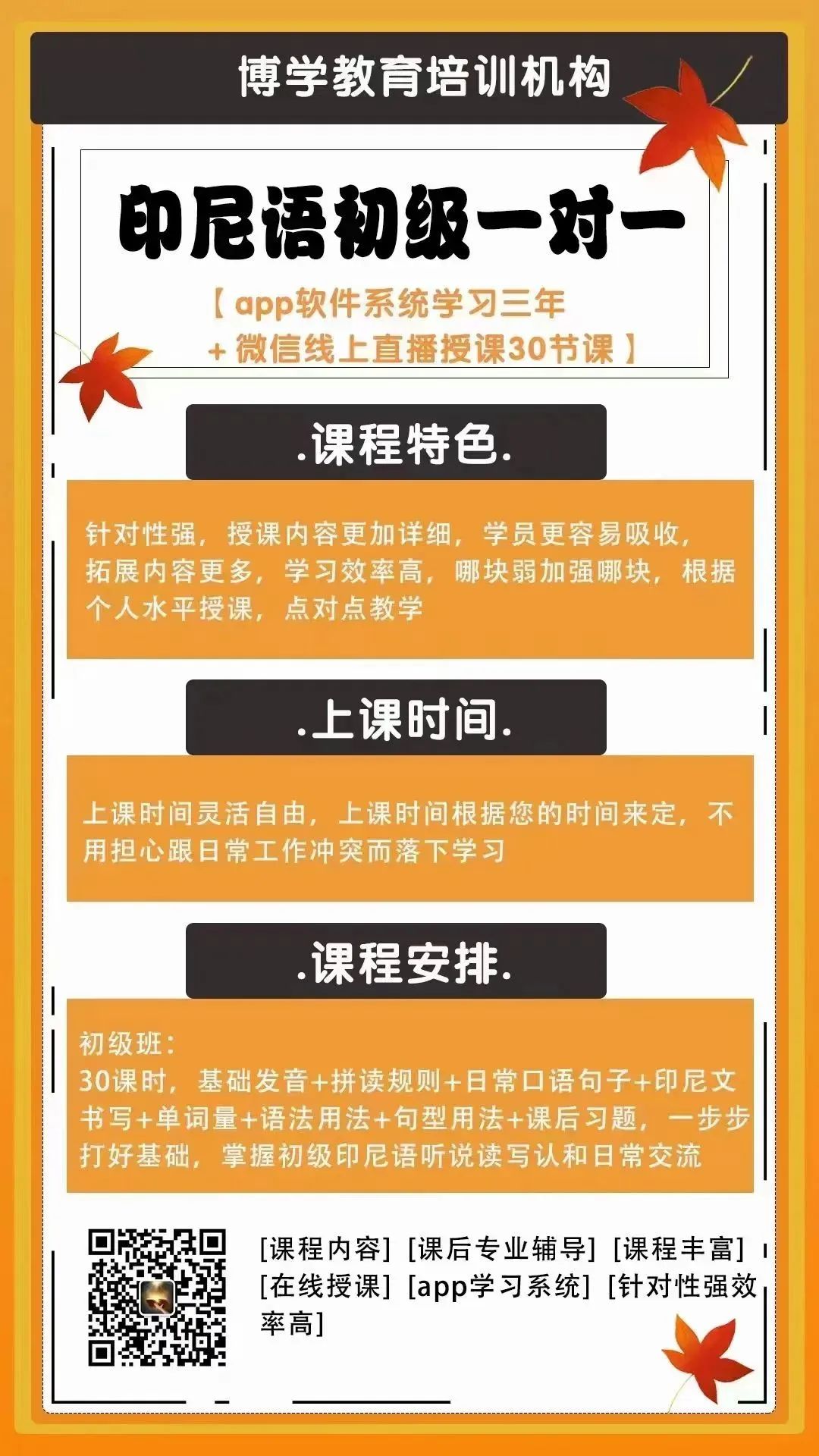 而且现在我们也开设了线下课程,可以点击链接报名哦:期待已久线下印尼语开课啦!走,一起去教室学习吧!
