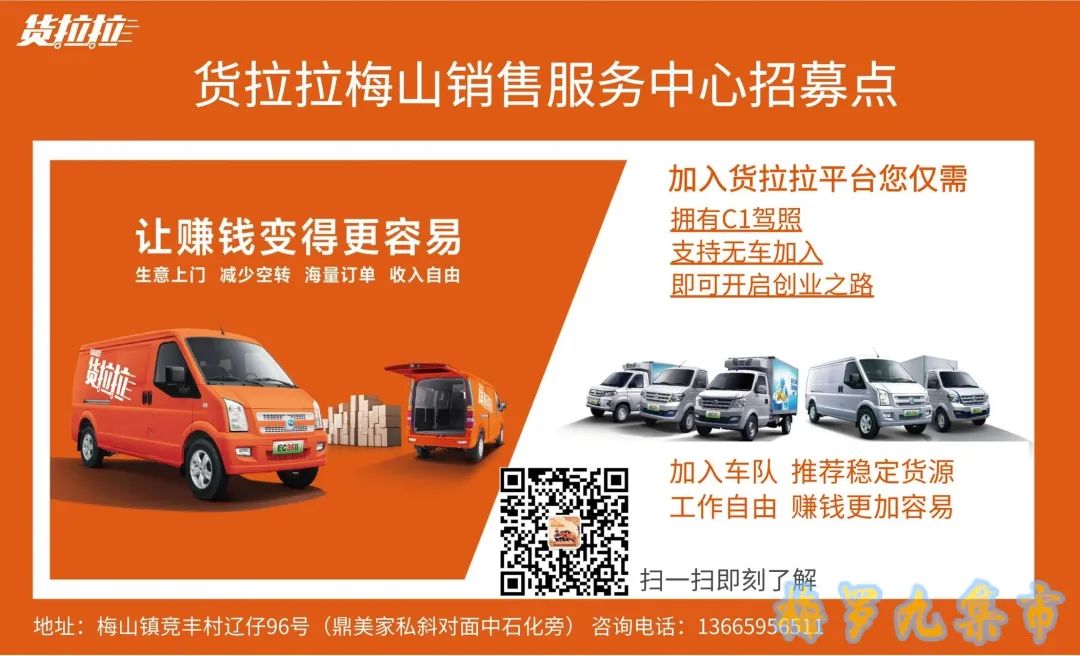 货拉拉梅山门店,招募货拉拉司机啦,低门槛,支持无车加入,多跑多赚,工作自由,收入轻松过万。重点:可享货拉拉直营车队推荐保底货源。招募要求:对货运服务行业有一定认知,能吃苦耐劳,有上进心。想轻松不劳而获,坐等掉馅饼的勿扰! (黄先生:13665956511)