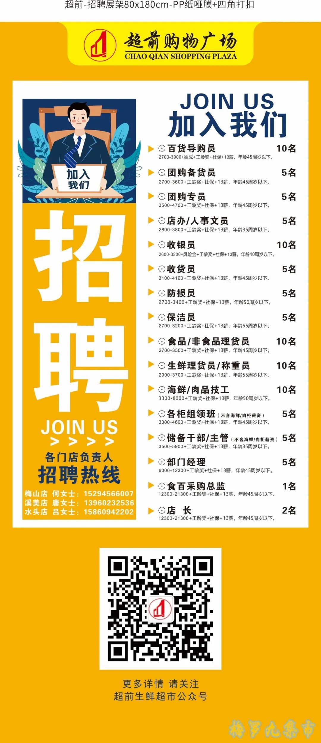 超前购物广场招聘:临时工/钟点工店办文员团购专员收银员、收货员防损员、保洁员食品/非食理货员生鲜称重员/理货员海鲜/肉品技工福利:工龄奖+社保+13薪待遇具体看图联系电话:15294566007 (匆~~匆:15294566007)