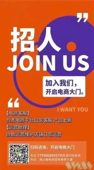 招聘:诚聘电商运行助理,客服数名。有工作经验者优先,地址:梅山镇东街刺围70号,联系电话13888032728,待遇面谈。 (strong:13888032728)