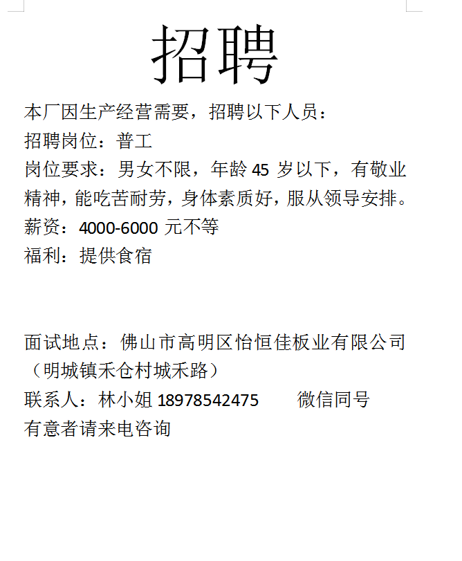 要求:有上进心,赋有学习力,思想觉悟高,有生产管理经验者尤佳
