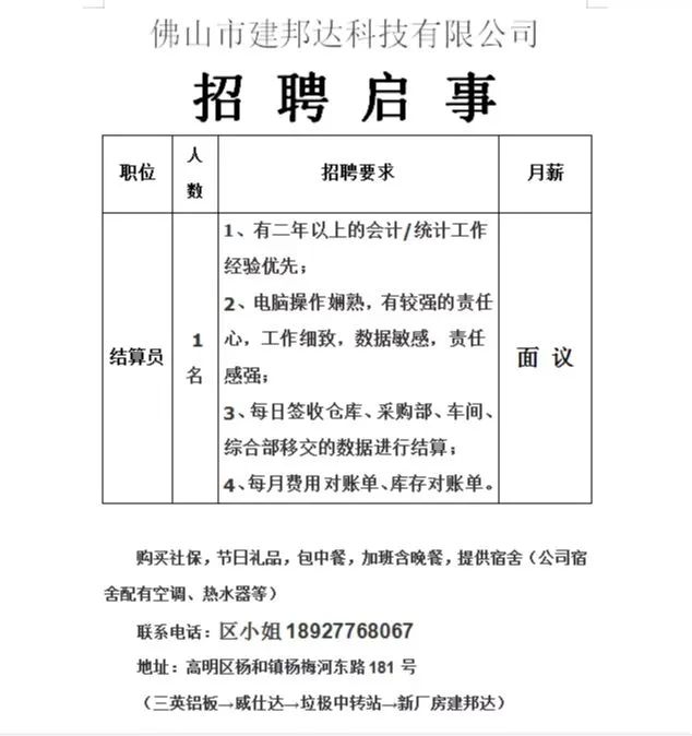 要求:至少1年同类岗位工作经验,工作认真仔细,有耐心;有安监、环保、消防管理经验者优先。