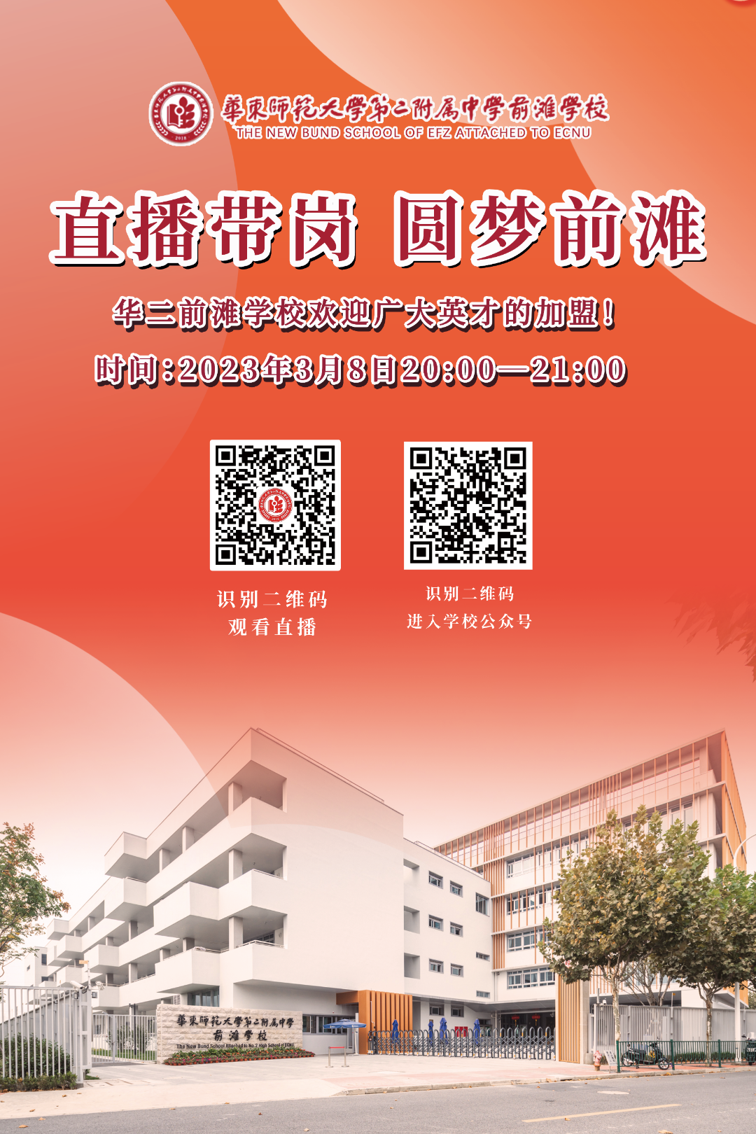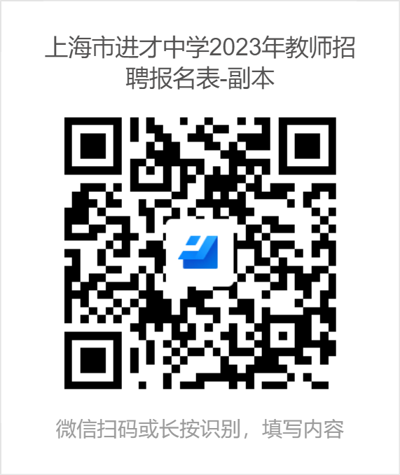 1、2023年3月底前,学校自主招考方式应聘人员请在“上海市进才中学”微信公众号,通过扫码如实填写《上海市进才中学2023年教师招聘报名表(第二批次)》并提交。