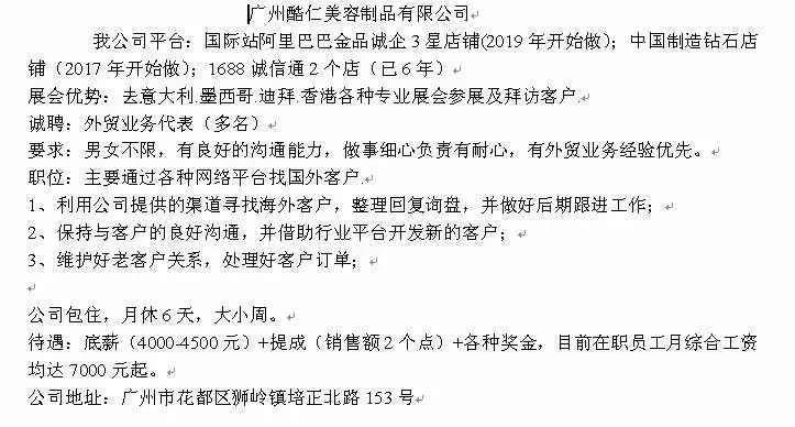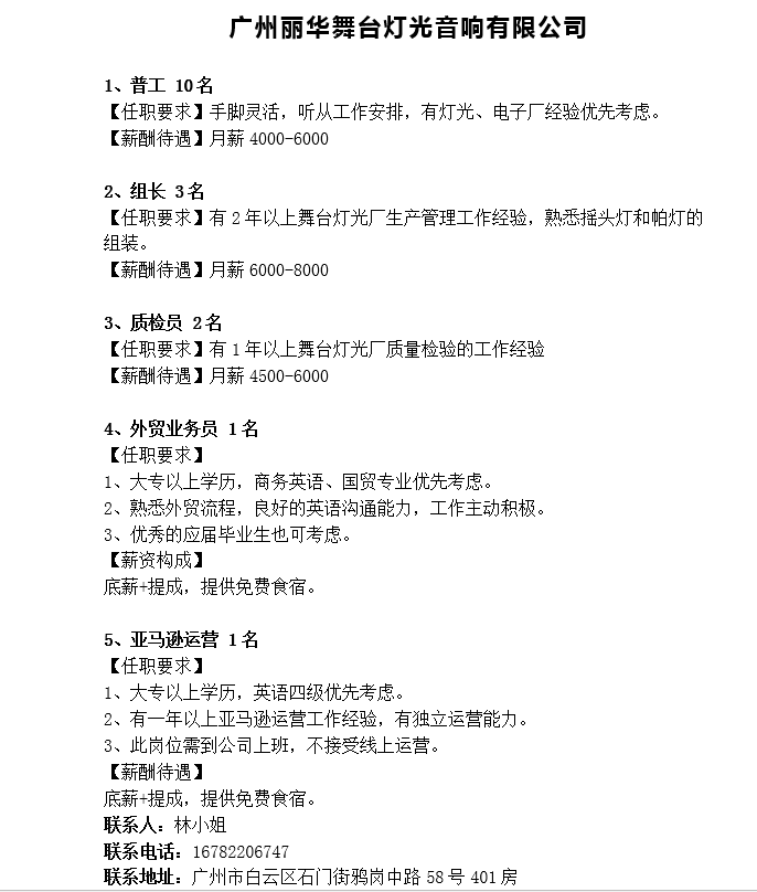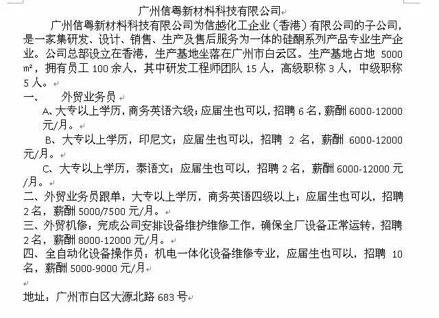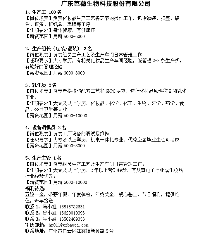 《广州白云企业招聘信息,多岗可选;实习生也可安排!》