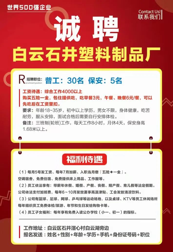 >《广州白云企业招聘信息,多岗可选;实习生也可安排!》