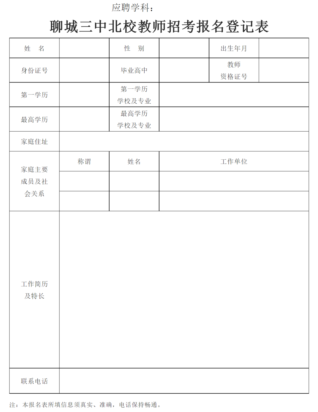 即日起网络报名,请将个人证明材料(毕业证、学位证、教师资格证)以及“聊城三中北校教师招考报名登记表”(附件1)填写完整并发至邮箱:lcszbxjwc@163.com (邮件名称为:姓名+应聘学科)