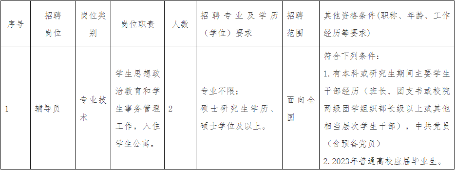 报名时间及形式:采用网络报名,每位应聘人员限报一个岗位。网络报名时间自公告发布之日起至2023年3月7日12:00止,逾期不再接受报名。