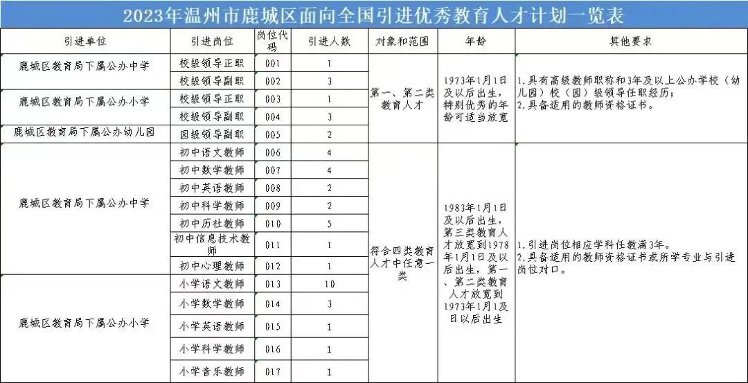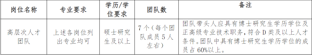 A、B、C、D、E1、E2类共设8个岗位,计划引进22人;F类(博士研究生)共设9个岗位,计划引进83人;人才团队计划引进7个;具体岗位需求如下:
