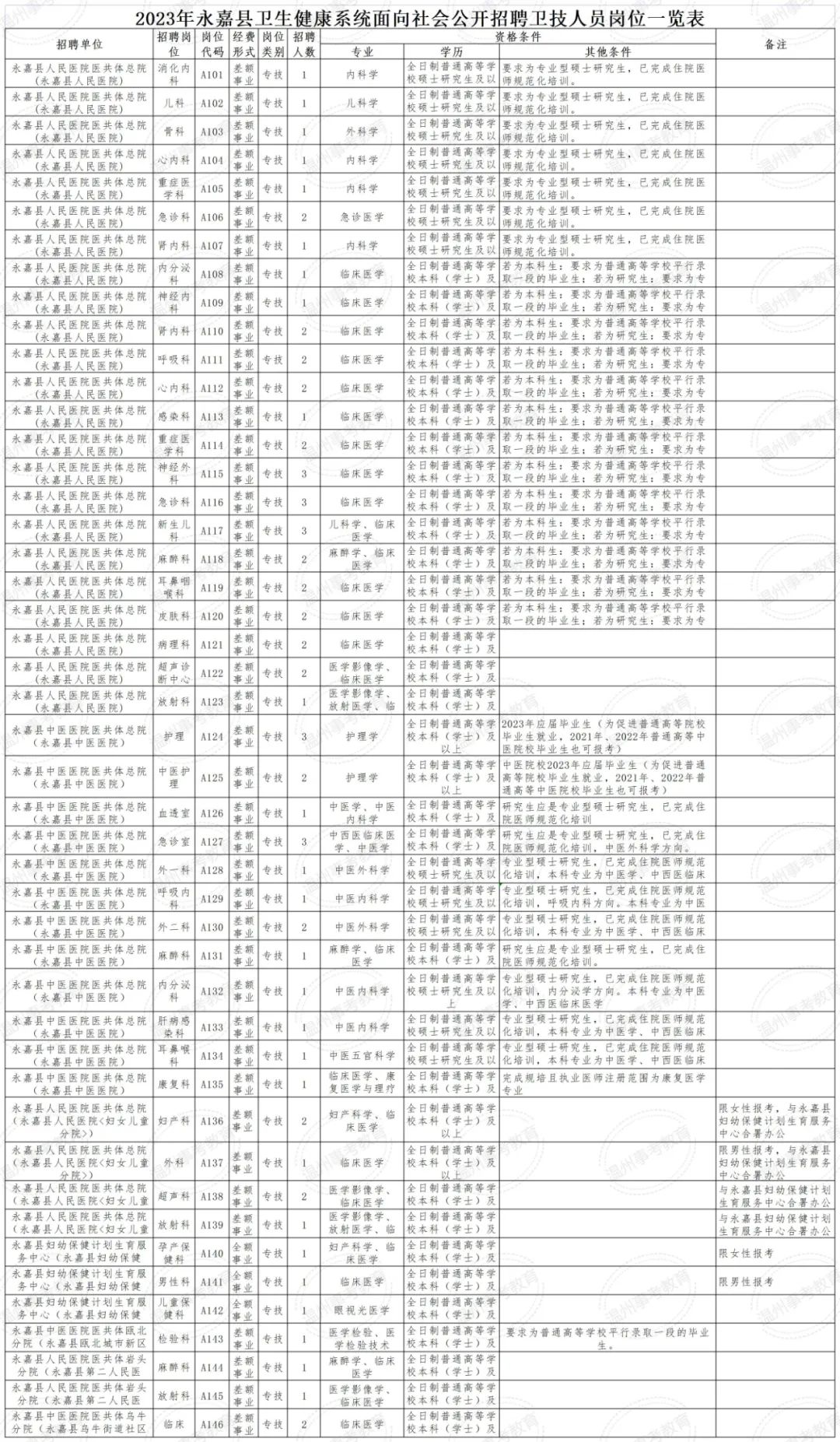 附件1:2023年永嘉县卫生健康系统面向社会公开招聘卫技人员岗位一览表.xlsx