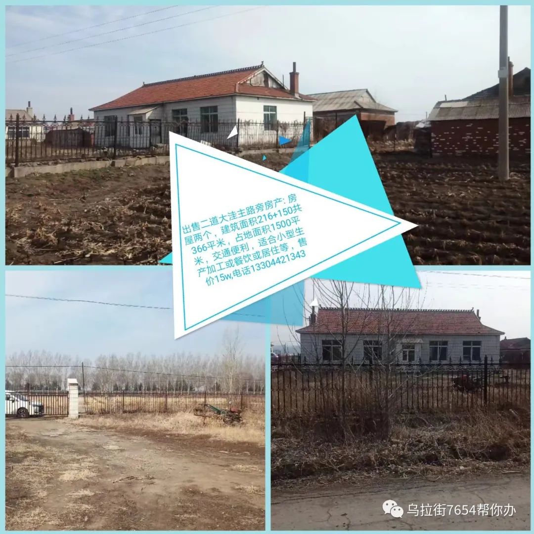 8、出售二道大洼主路旁房产,房屋两个,建筑面积216+150,共366平方米,占地面积1500平方米,交通便利,适合小型生产加工或餐饮或居住,售价15万,电话13304421343