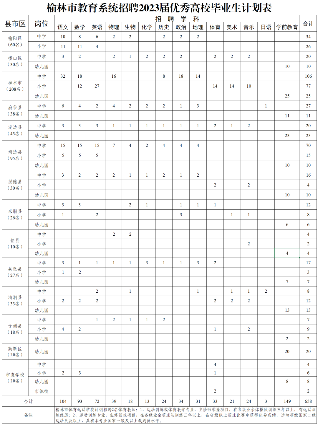 根据榆林市基础教育事业发展需要,经市政府专题会议研究,现就我市面向2023届高校毕业生公开招聘中小学(含幼儿园,下同)教师有关事项公告如下: