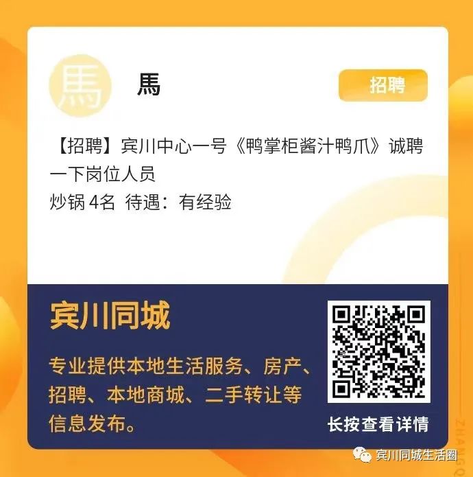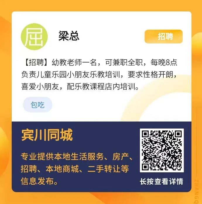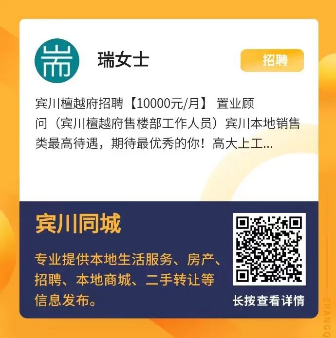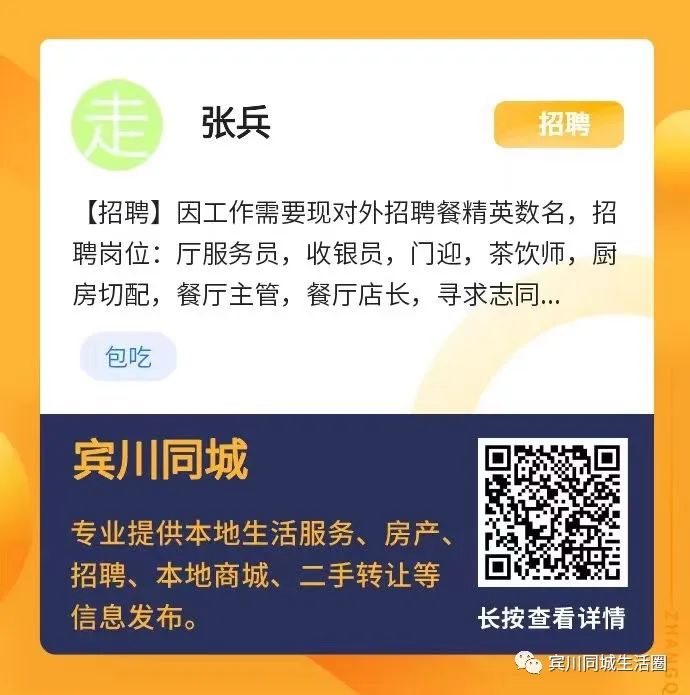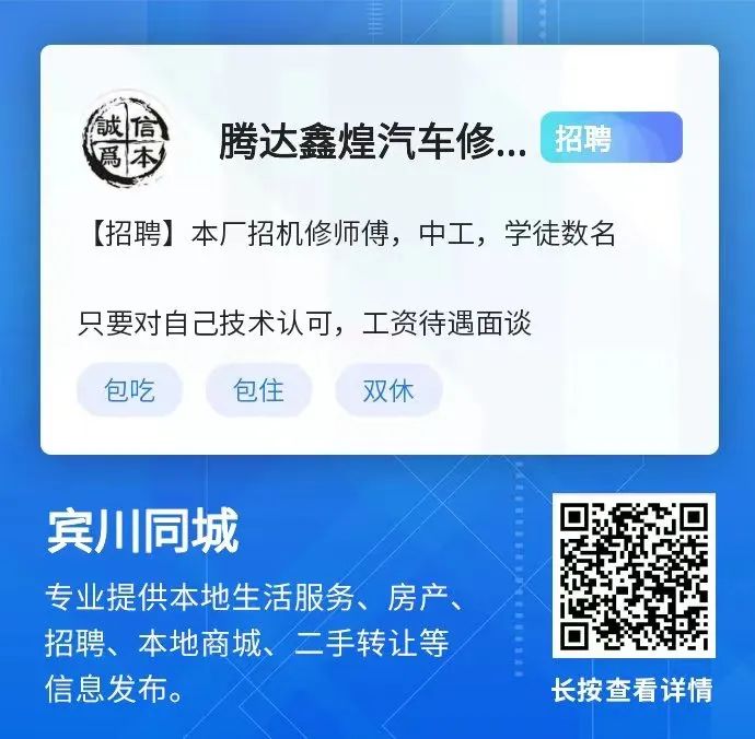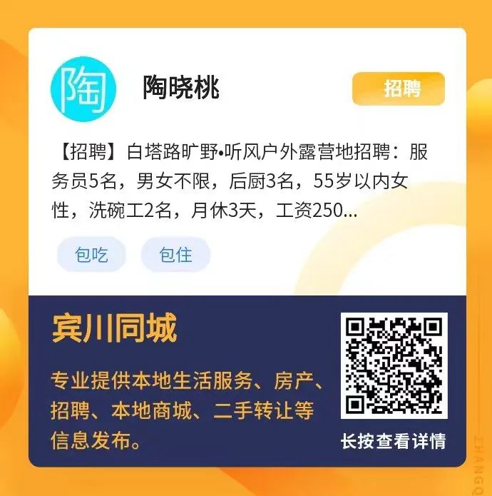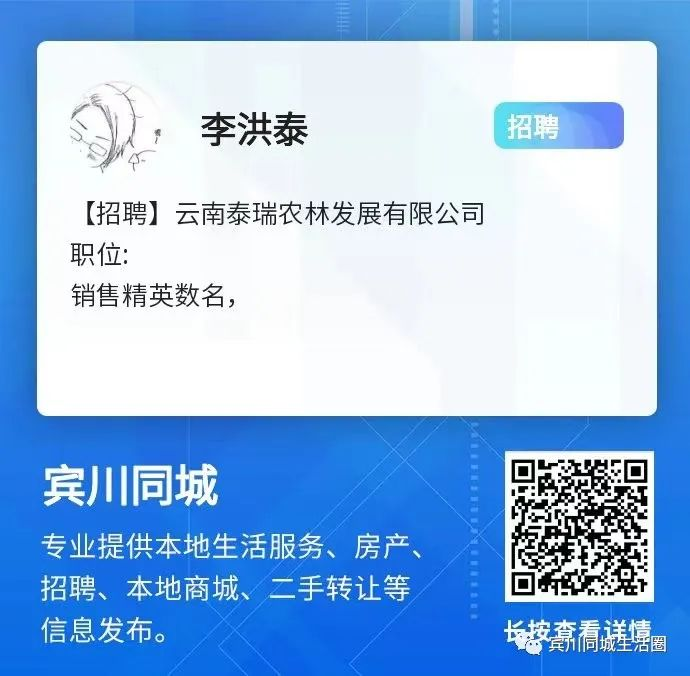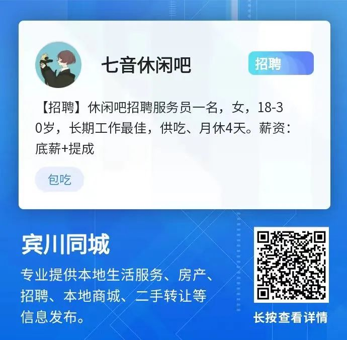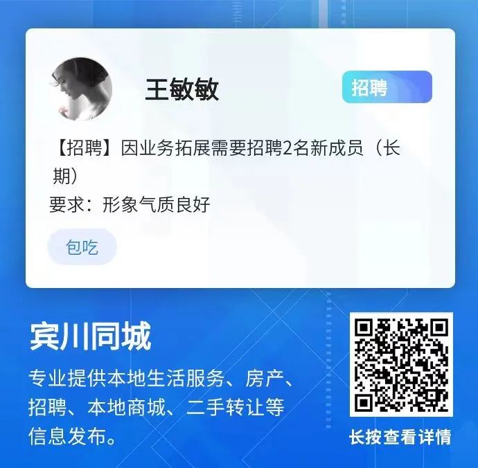 ▲长按图片,识别图片的二维码,进入宾川同城平台,查看详情.