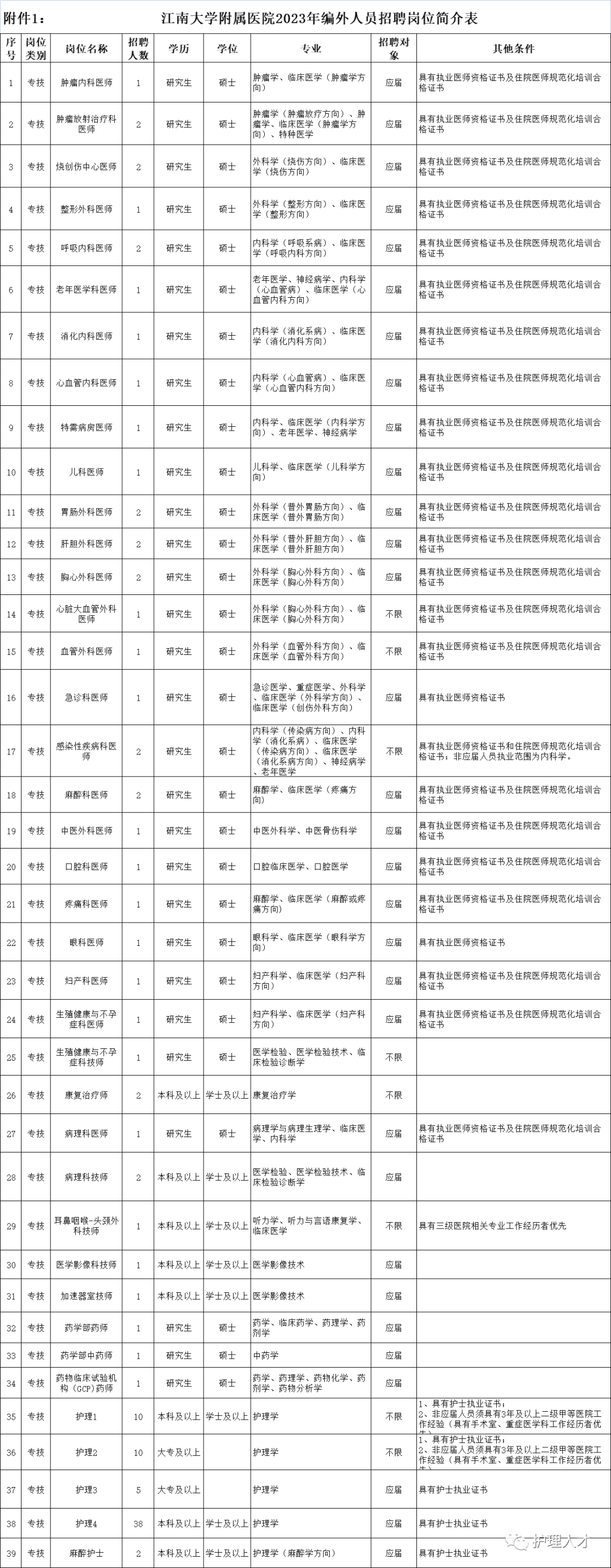 招聘岗位:详见附件1《江南大学附属医院2023年编外人员招聘岗位简介表》