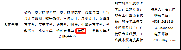 人事处咨询电话:0535-8590929(孟老师、朱老师)