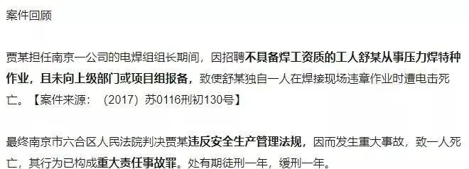 >通报:招聘无证员工从事特种作业,班组长被判刑 | 班组安全怎么干?一文搞懂!