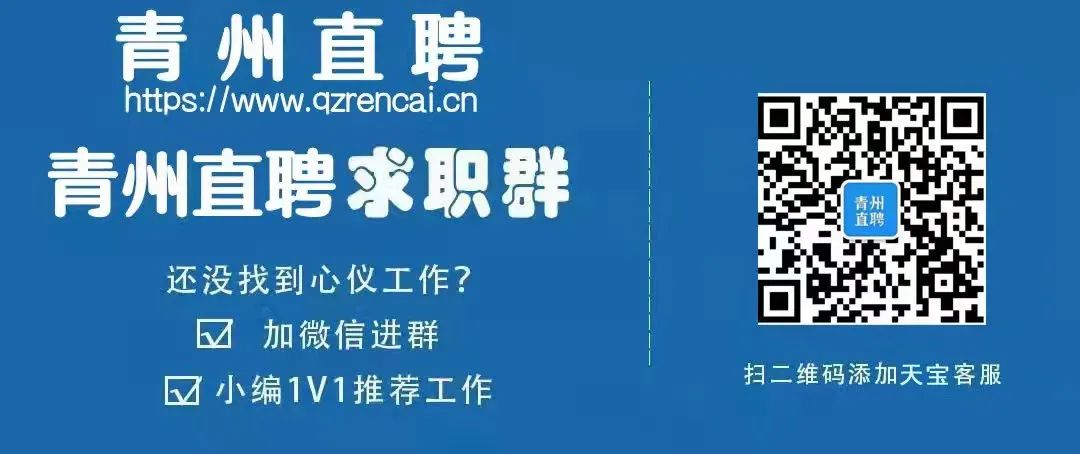 友情提示:本招聘信息由青州论坛战略合作伙伴淘骥人力资源旗下青州直聘发布!安全有保障!一对一人资服务,如有需要请添加微信qingzhouzhipin