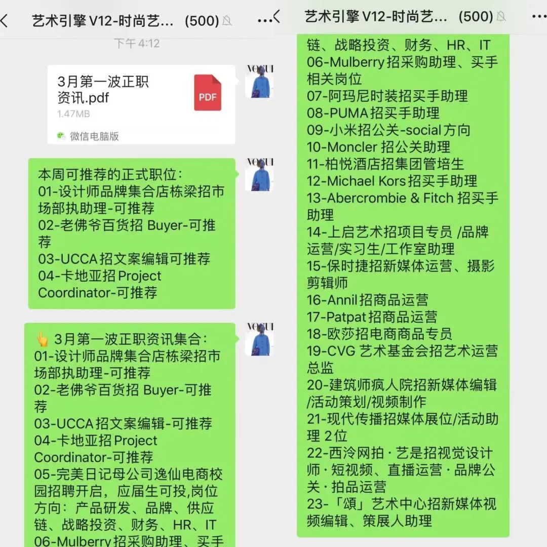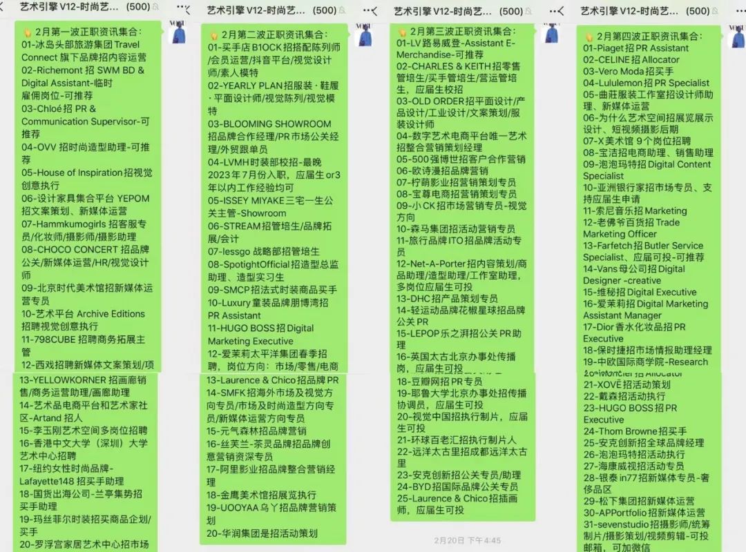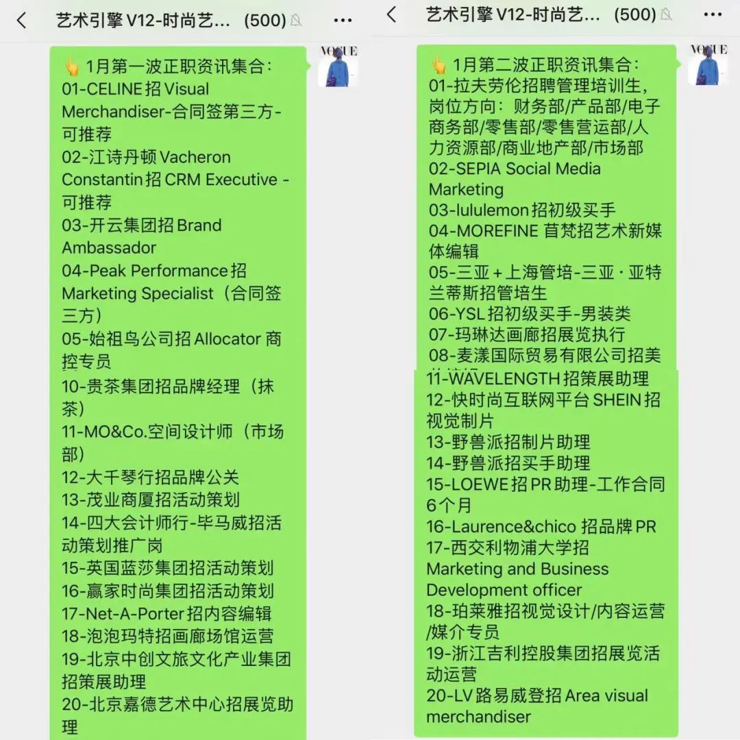 1、所有跟时尚艺术相关的热门岗位,社群成员都能第一时间收到