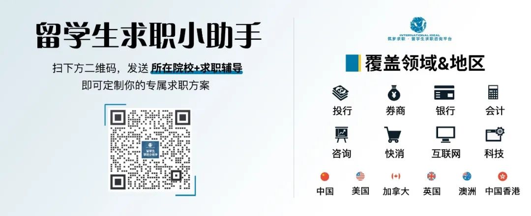筑梦求职 INTERNATIONAL IDEAL ,2014 年成立于美国,是北美最早成立的留学生求职咨询平台之一。我们是宁波人才服务中心官方合作伙伴,多次荣登胡润榜单,至今已帮助 8000+ 学员获得来自 Goldman Sachs, McKinsey, Deloitte, P&G 等企业 offers。我们的服务包括:求职咨询、背景提升、名企内推、海外招聘等;商务合作请联系:Coop@internationalideal.com