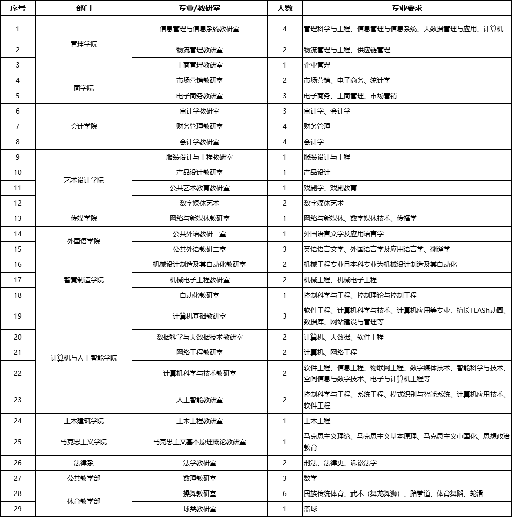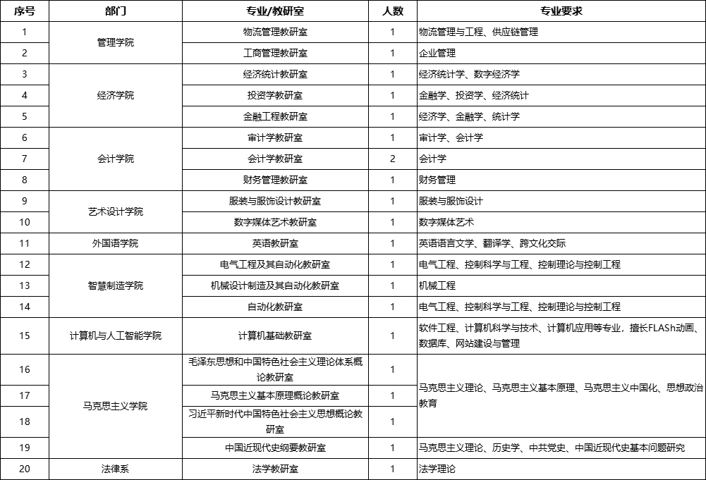 ![]() 一、学校概况 郑州经贸学院前身为中原工学院信息商务学院,成立于2003年4月,是首批经国家教育部批准具有全日制普通本科学历教育办学资格的独立学院。 学校现有学科涵盖管理学、经济学、工学、艺术学、文学、法学等六大学科门类。学校十分重视学科、专业建设,现有省级重点建设学科3个(企业管理、机械制造及其自动化、控制理论与控制工程),省级实验教学示范中心2个(服装与纺织品设计综合实验教学中心、经济管理实验教学中心),省级一流专业5个(财务管理、服装与服饰设计、计算机科学与技术、会计学、市场营销),省民办高校学科专业建设资助项目3个(会计学、物流管理、计算机科学与技术),省民办高校品牌专业9个(建筑环境与能源应用工程、服装与服饰设计、市场营销、电气工程及其自动化、会计学、财务管理、国际经济与贸易、电子商务、广播电视学),省专业综合改革试点专业4个(会计学、信息管理与信息系统、服装与服饰设计、英语),河南省示范性虚拟仿真实验教学立项建设项目1个(服装与纺织品设计),河南省一流本科课程3门(摄影技术与艺术、英语阅读三、市场调查与分析),河南省精品资源共享课程1门(民法学),河南省级高校思想政治理论课优秀课程1门(毛泽东思想和中国特色社会主义理论体系概论),河南省高等学校精品在线开放课程6门(操作系统、三维动画设计、职业规划与创业、市场营销学、Excel在财务中的应用、管理会计),河南省高等学校优秀基层教学组织5个(电子商务教研室、英语教研室、财务管理教研室、服装与服饰设计教研室、计算机科学与技术教研室)。 十多年来,学校不断加强内涵建设,办学条件日益改善,师资队伍建设不断加强,学科专业建设成效显著,人才培养质量稳步提高,为区域经济社会发展做出了积极贡献,赢得了上级主管部门和社会各界的一致好评。学校先后被授予“全国先进独立学院”、“中国民办高等教育优秀院校”、“河南省优秀民办学校”等20余个荣誉称号。 二、招聘岗位及要求 (一)、高层次教师 1、基本条件 (1)具有中华人民共和国国籍、遵守宪法和法律; (2)热爱高校教育事业,具有良好的职业道德素养; (3)身心健康,服从工作安排,有较强的岗位适应能力。 2、岗位条件 (1)副教授及以上职称或博士研究生学历毕业并获得博士学位; (2)具有高校系列副高级以上职称者,学历可适当放宽。 3、有下列情形之一者,不得应聘: (1)尚未解除党纪、政纪处分或正在接受纪律审查的; (2)涉嫌违法犯罪正在接受司法调查尚未做出结论的; (3)曾在招聘考试中被认定严重违反招聘纪律行为的; (4)其他不符合招聘有关要求的情形。 ![]() (二)、一般教师 1、基本条件 (1)具有中华人民共和国国籍、遵守宪法和法律; (2)热爱高校教育事业,具有良好的职业道德素养; (3)身心健康,服从工作安排,有较强的岗位适应能力。 2、岗位条件 (1)硕士研究生毕业并获得硕士学位,本硕专业相同或相近; (2)一直在高校从事教学工作并取得讲师任职资格可适当放宽; 3、有下列情形之一者,不得应聘: (1)尚未解除党纪、政纪处分或正在接受纪律审查的; (2)涉嫌违法犯罪正在接受司法调查尚未做出结论的; (3)曾在招聘考试中被认定严重违反招聘纪律行为的; (4)其他不符合招聘有关要求的情形。 ![]() (三)、实验教师 1、基本条件 (1)具有中华人民共和国国籍、遵守宪法和法律; (2)热爱高校教育事业,具有良好的职业道德素养; (3)身心健康,服从工作安排,有较强的岗位适应能力。 2、岗位条件 (1)硕士研究生毕业并获得硕士学位,本硕专业相同或相近; (2)一直在高校从事教学工作并取得讲师任职资格可适当放宽; 3、有下列情形之一者,不得应聘: (1)尚未解除党纪、政纪处分或正在接受纪律审查的; (2)涉嫌违法犯罪正在接受司法调查尚未做出结论的; (3)曾在招聘考试中被认定严重违反招聘纪律行为的; (4)其他不符合招聘有关要求的情形。 ![]() 以上招聘岗位信息随着招聘的进行实时更新递减,请以学校官网公布的招聘启事为准。 三、待遇与福利 聘任年限:符合条件的应聘人员一经录用,实行合同聘用制,教师首个聘任期限为3年。聘任期满后经考核合格,符合聘任要求者均予以续聘。 薪资水平:实行结构工资制,由岗位工资、职级补贴、课时津贴、人才津贴等构成,教授:年薪14万元以上;副教授、博士:年薪12万元以上;讲师年薪6.2-7.6万元;硕士年薪5.8-7.1万元。特殊人才在协商一致的基础上执行协议工资。 符合郑州市青年人才储备计划政策的博士、硕士和本科毕业生还可以从政府分别按每月1500元、1000元、500元的标准申领3年的生活补贴。 保险福利:人事关系一经转入郑州经贸学院,即统一购买养老、医疗、失业等社会保险和住房公积金。加入教育工会,享受有关福利待遇。 住宿:学校可为在郑州市区及龙湖镇无住房的老师提供教师公寓。 户籍:需要在郑州市落户者,可以办理郑州市户口。 四、应聘须知 1.身心健康,能胜任工作。 2.一般教师要求硕士研究生毕业并获得硕士学位,本硕专业相同或相近;一直在高校从事教学工作并取得讲师任职资格可适当放宽; 3.应聘方式: 请登录“郑州经贸学院人才招聘网”(方法1:进入郑州经贸学院官网,点击导航栏-【人才招聘】处。方法2:点击链接http://rsxt.zueb.edu.cn/zpNew/index.do) 高层次教师岗在【岗位搜索】