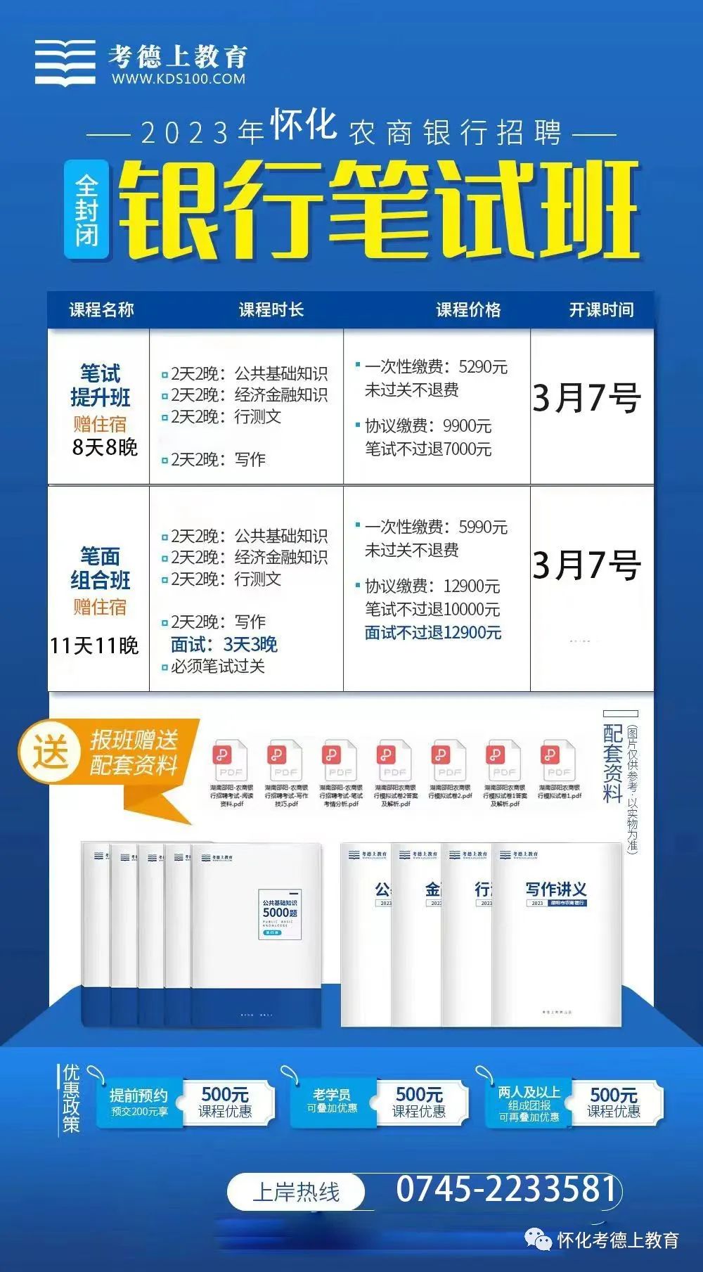 心理测评 面试入围者在收到入围通知后须完成在线心理测评,届时将由前程无忧招聘项目组发邮件/短信通知。请按照通知要求执行,未遵照执行的视同放弃。在线心理测评只有一次机会,逾期未作答、在线测评结果无效者,视为放弃面试资格。线上测评主要是对考生的心理状态和心理素质进行心理测评,是对有不良倾向、抗压性较差或有心理缺陷的考生进行综合评估的一项内容。 面试 面试最低开考人数为3人,开考人数以参加笔试且成绩有效人数统计,以后每增加一名招聘计划按不低于1:2的比例在笔试合格成绩排名中从高分到低分依次确定面试人选,达不到开考比例的,可以核减、取消相应岗位招聘计划。最后一名笔试入围成绩相同的,一并进入面试,不占比例。面试地点在怀化,具体时间及相关规定会另行公告,请以届时的公告内容为准,面试采用结构化面试的方式进行。如通过笔试进入面试环节的考生需携带身份证原件及扫描件、笔试准考证纸质版、毕业证、学位证的原件及扫描件、学历认证有关材料(国内学历应届生需携带“教育部学籍在线验证报告”、国内学历往届生需携带“教育部学历证书电子注册备案表”、国外学历应届生需携带学校出具的在校证明、国外学历往届生需携带教育部留学服务中心出具的“国外学历学位认证书”),考生本人、配偶、父母的征信报告详细版(不接受网上的简版征信报告)。 考察 考察人选根据招聘计划数1:1的比例按综合成绩排名依次确定。综合成绩按笔试和面试成绩各占50%计算,出现综合成绩并列时,根据面试成绩排名,确定考察人选。考察人选属于在职人员的,考察阶段需提供现所在单位同意报考的证明,已离职人员需提供离职证明。 体检 体检对象为考察合格的拟录人员,体检医院由本行临时指定一家县级二级及以上医院集中进行,体检结果需由体检医院直接出具并加盖公章确认。体检的项目、标准参照招考公务员的标准掌握。对色盲、手指残缺等明显不适合银行从业的情形,可以界定为体检不合格。拟聘人员不按规定要求参加体检的,视为放弃体检;在体检过程中弄虚作假或故意隐瞒过往疾病史的,按取消录用资格处理。针对体检结论有疑问的人员,在接到体检结论通知之日起7日内可以向本行提出复检,复检只进行一次,并以复检结论为准。 公示 根据笔试、面试、考察和体检结果,确定拟录用人员。拟录用人员名单在前程无忧招聘网(http://campus.51job.com/ylcxmyxpxh2023/) 公示5个工作日并接受社会监督,公示期满无异议的,按规定办理相关手续;公示期内反映的问题经查实影响录用的,取消其录用资格。 备案 将拟录用人员名单报省联社怀化办事处、省联社备案。 办理录用手续 省联社和办事处反馈备案意见后,由本行按要求与新员工签订劳动合同。对新员工约定试用期和最低服务年限,工资待遇按相关文件规定执行。试用期最长不超过6个月,最低服务年限不少于4年。新招员工在试用期考核不合格,或发现有不符合录用条件的,取消录用。 补录 考生有体检、考察不合格或自动放弃导致招录计划缺额的,可以按实际缺额人数补录。是否补录由我行党委研究决定,补录对象从同一招聘岗位按综合成绩从高分到低分依次选取,在综合成绩相同的条件下,补录按笔试成绩从高到低进行。没有补录对象的,取消补录计划。补录次数一般不超过一次,补录工作需最迟在一个招聘年度内完成,不得跨年度。 考生报名时须留下真实有效的联系方式(手机、邮箱以及固定电话),并保持通讯畅通。否则,因无法与考生取得联系所造成的后果,由考生自行负责。 考生需提交未过期的学信网学籍在线验证报告或学信网电子注册备案表,如已经过期,请先在学信网进行延期再提交。 考生学历必须在2023年7月31日前在学信网或教育部留学服务中心进行学历认证,在规定时间内未认证学历的,视为不符合学历条件,不予录用。 本次招聘考试不收取任何费用,不指定考试辅导用书,不举办也不委托任何机构和个人举办考试辅导培训班。考生因相信虚假培训及考试信息所产生的一切后果由考生本人负责,敬请广大考生提高警惕,切勿上当受骗。 考生对个人报考信息的真实性负责,资格审查将贯穿招聘工作始终,招聘过程中乃至正式录用后,发现有不符合招聘条件或弄虚作假的,本行核实后有权随时取消考生参加考试和录用资格,签订了劳动合同的解除劳动合同。 其他未尽事宜和需对外发布的招聘信息,将在相关招聘网站公布,不另行通知。考生因未按报名的要求报名或未及时查阅公开发布的招聘信息而带来的影响和后果,概由考生本人负责。 我行有权根据需求变化及报名情况等因素,调整、取消个别招聘对象的招聘计划,并对本次招聘享有最终解释权。 名师授课 宝子们可加我微信预约 ??? 有任何疑问 请找怀化考德上官方客服 老师进一步咨询了解