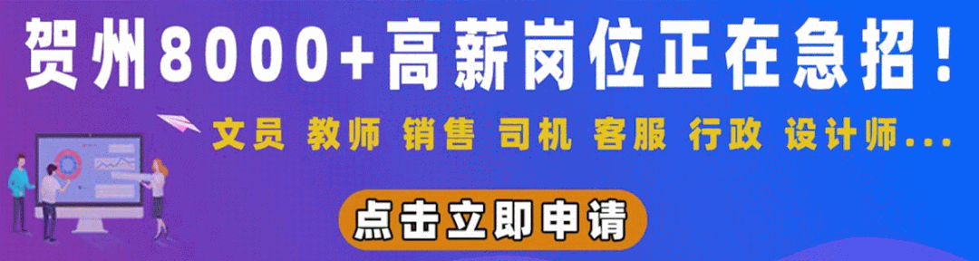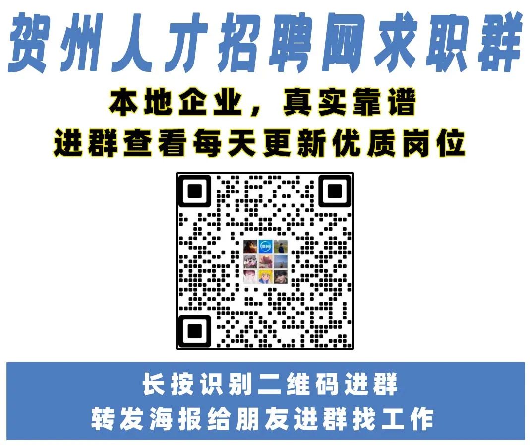 长按识别二维码,了解更多 还有贺州本地一大批高薪工作更新 快看看有没有适合你的工作吧! ▽▽▽ 贺州市八步区凤银珠宝销售经营部 日用品、百货 | 10-30人 门店主管(五险+无责底薪+高提成) 3000-7000元/月 黄金珠宝门店导购(五险+接受零基础,有带薪培训) 3000-6000元/月 贺州市八步区灵峰南路49-2号(老凤祥珠宝) 贺州市八步区铭溢餐饮店 旅游、餐饮、娱乐、休闲 | 10人以下 店长 3500-6000元/月 营业员 2600-3500元/月 烘焙师 2600-6000元/月 贺州市八步区绿洲家园小区 贺州中壹财税服务有限公司 咨询、贸易、开发、财险 | 30-60人 销售代表(双休+五险) 3000-10000元/月 会计助理(双休+法定节假日) 2000-3000元/月 电话销售(周末双休+销售奖金) 3000-10000元/月 广西贺州市八步区八步三中对面2层 广西立兴房地产有限公司 城建、房产、建材、装潢 | 60-100人 销售顾问(五险一金+节日福利) 2000元/月 【猎鹰】高级销售顾问(富川碧桂园天誉) 3000-4000元/月 【猎鹰】高级销售顾问(碧桂园凯旋城) 3000-4000元/月 【猎鹰】高级销售顾问(碧桂园玖珑湾) 3000-4000元/月 【猎鹰】高级销售顾问(碧桂园天玺湾) 3000-4000元/月 广西贺州市八步区天玺湾销售中心 贺州市凯歌汽车用品有限公司 汽车、物流 | 10-30人 洗车技师(工作餐+加班补助) 2500-6000元/月 摄影师(提供食宿+晋升空间) 3000-5000元/月 汽车美容技师(提供食宿) 2500-6000元/月 贺州市八步区建设西路78号(凯歌汽车服务) 贺州市新华星贸易有限公司 城建、房产、建材、装潢 | 60-100人 家具安装(五险+工作餐) 6000-12000元/月 欧派橱柜销售(五险+销售奖金) 7000-12000元/月 贺州市建设中路39号 九江一米田科技有限公司 城建、房产、建材、装潢 | 100-1000人 电话客服 3500-10000元/月 业务精英 3500-10000元/月 人事主管 4000-7000元/月 招商经理(提供食宿) 8000-10000元/月 网络售房直播专员 3000-6000元/月 贺州市八步区平安西路与鞍山西路交汇处 贺州市八步区善美苑美容馆 医疗、药品、器械、美容保健 | 10-30人 美容养生学徒(提供食宿+免费培训) 3500-10000元/月 美容师(提供食宿+绩效奖) 3500-10000元/月 贺州市八步区灵峰街63- 65号 广西荆美门窗有限公司 城建、房产、建材、装潢 | 30-60人 门窗业务员(工作餐+综合补贴) 3000-10000元/月 贺州市八步区莲塘镇美仪村八路塘面鹅仔冲 贺州隆源新材料有限公司 城建、房产、建材、装潢 | 100-1000人 淘宝销售(五险+绩效奖+餐补) 3000-6000元/月 贺州市平桂区光明大道229号途虎养车工场店二楼 贺州市八步区翔天轮滑鞋店 旅游、餐饮、娱乐、休闲 | 10人以下 轮滑教练(综合补贴+免费培训) 15元/小时(月结) 广西贺州市八步区灵峰商业步行街241号 广西贺州鑫汇贸易有限公司 咨询、贸易、开发、财险 | 30-60人 电动车销售(餐补+节日福利) 4000-6000元/月 爱玛品牌电动车推广专员(必回) 4000-6000元/月 电动车维修技师(学徒也招) 4000-6000元/月 洗车工人(包吃午餐) 2500-3500元/月 贺州市八步区牛仔湾二巷2号 贺州市精英通讯设备销售有限公司 电信邮政、计算机、互联网 | 10-30人 电话客服(兼职)(加班补助+节日福利) 2000-3000元/月 电话客服(节日福利+免费培训) 3000-8000元/月 营业员(节日福利+免费培训) 3000-10000元/月 建设中路93号 更多热门职位 点下方图片进入贺州人才招聘网查看 ▽ 贺州人才招聘网专门给需要找工作的小伙伴
