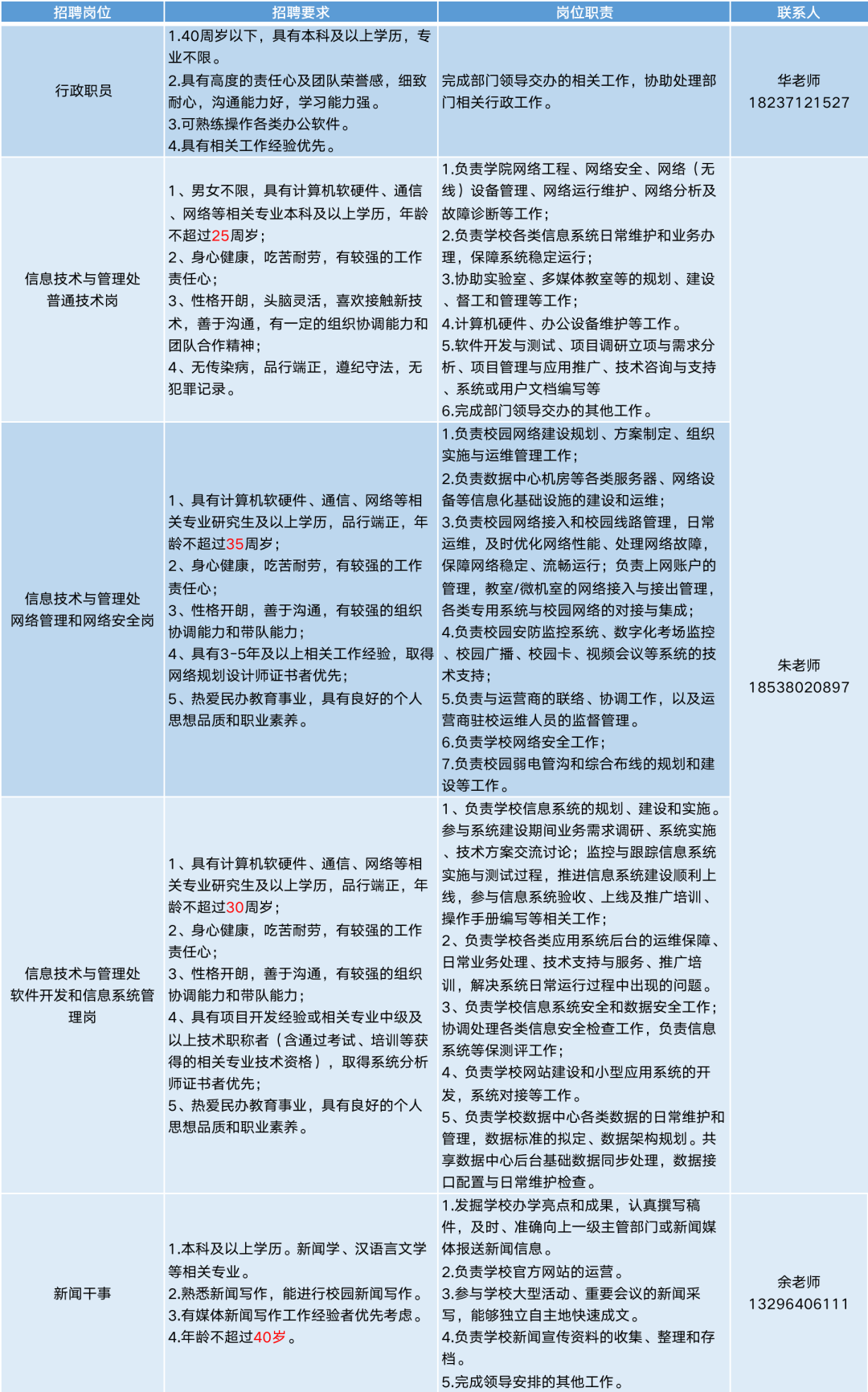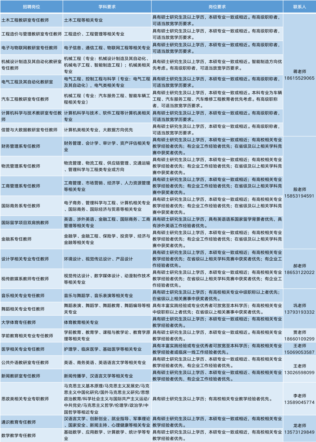 二、招聘岗位及要求 01 专职教师招聘岗位
