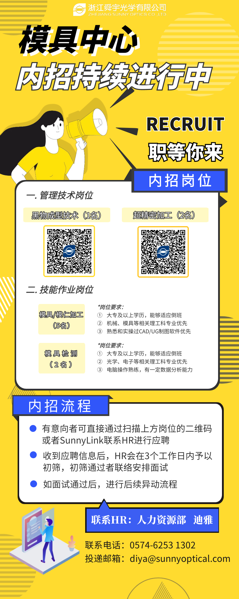【舜宇浙江光学内部招聘】模具中心内招火热进行中,职等你来~