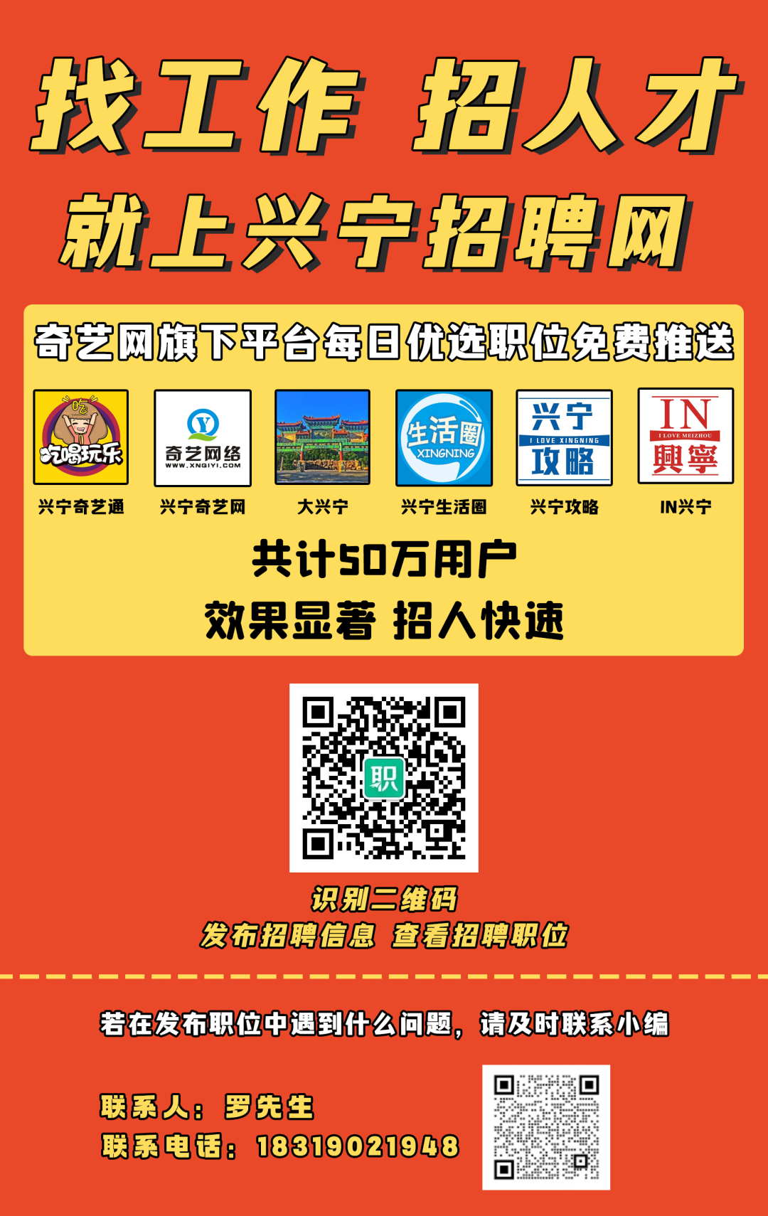 长按识别二维码进求职群↓ ![]() 兼职全职招聘群 大量招聘暑假工、兼职! 实时更新兴宁企业、单位招聘信息, 全职、暑假工、兼职通通都有! 添加客服微信进群查看! (商家可免费发布职位招聘)