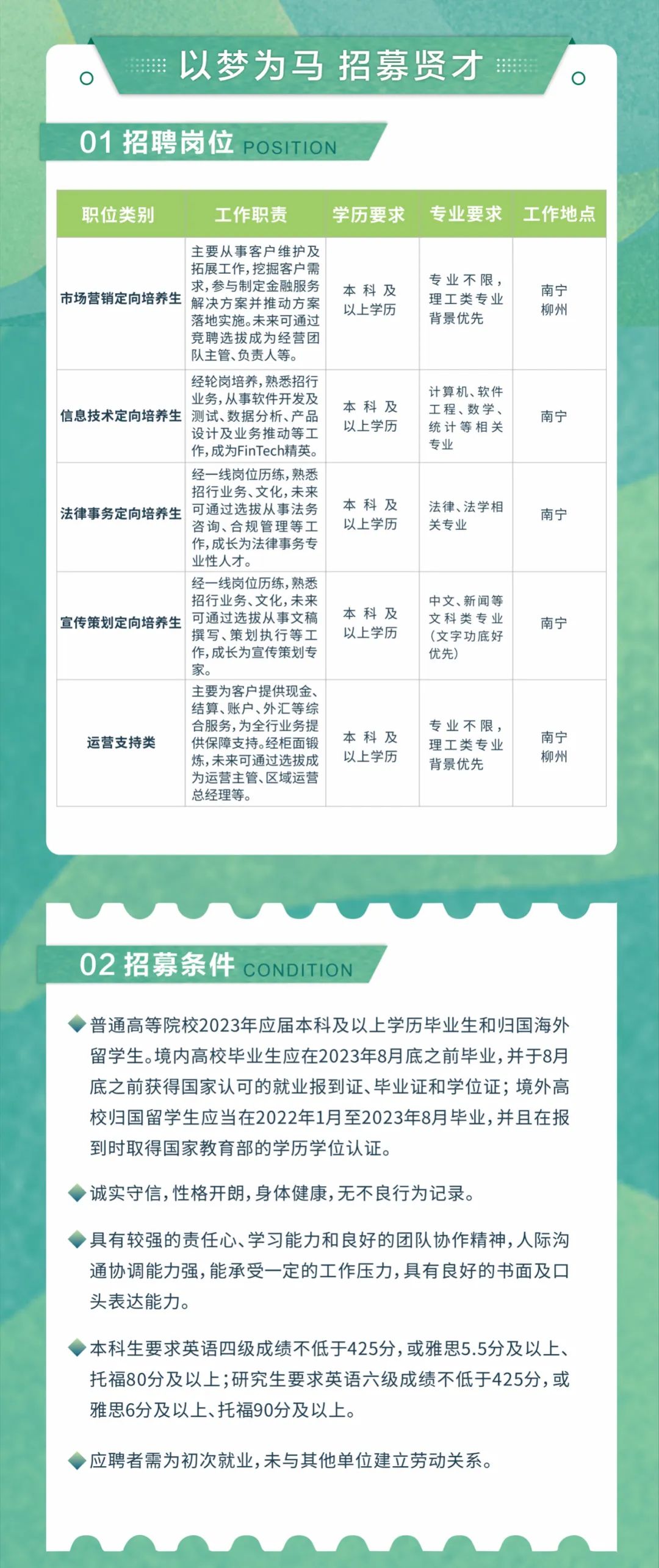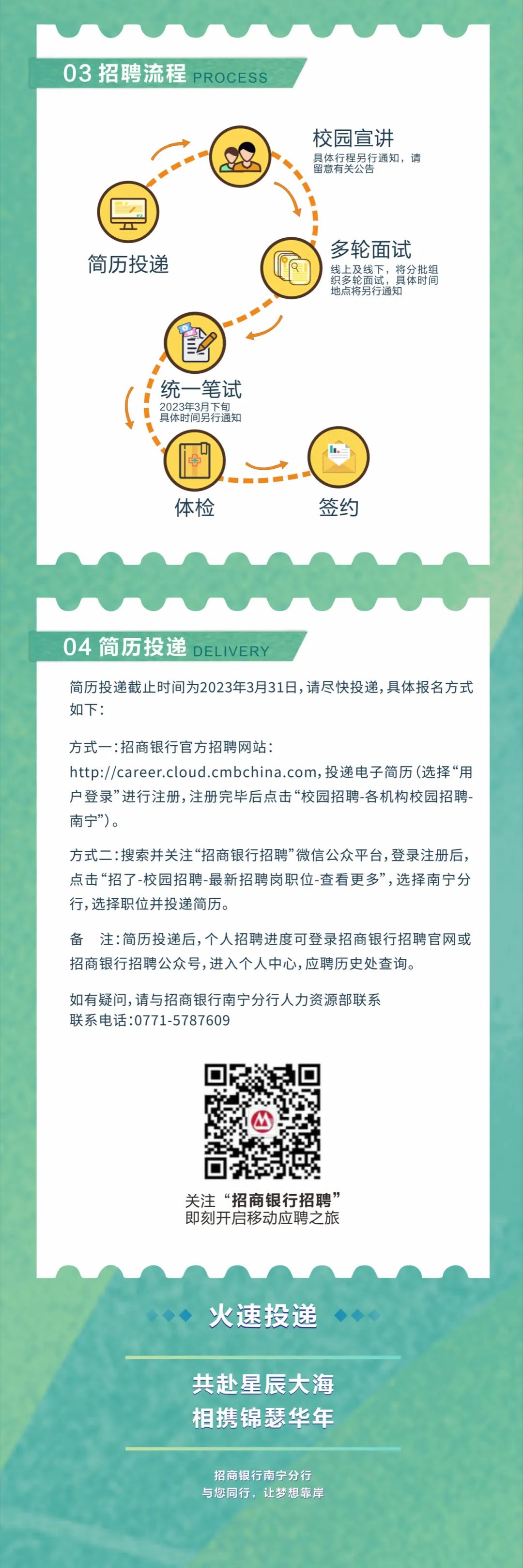 | 华中科技大学2023届就业群 | 央企国企:692827456 人文社科:854945927 信息技术:536187759 智能制造:885730383 交通建筑:870612979 生物医疗:564261016 | 博士就业交流群:985746529 | \ | / ★ 与你相“喻”,“就”是最美的幸运! 就业指导与服务中心学生团队期待你的加入! 加入招新群了解更多详情:726765667 来源 | 招商银行南宁分行 编辑 | 丁明慧 审核 | 王曦 ![]() 点击“阅读原文”了解详情 |