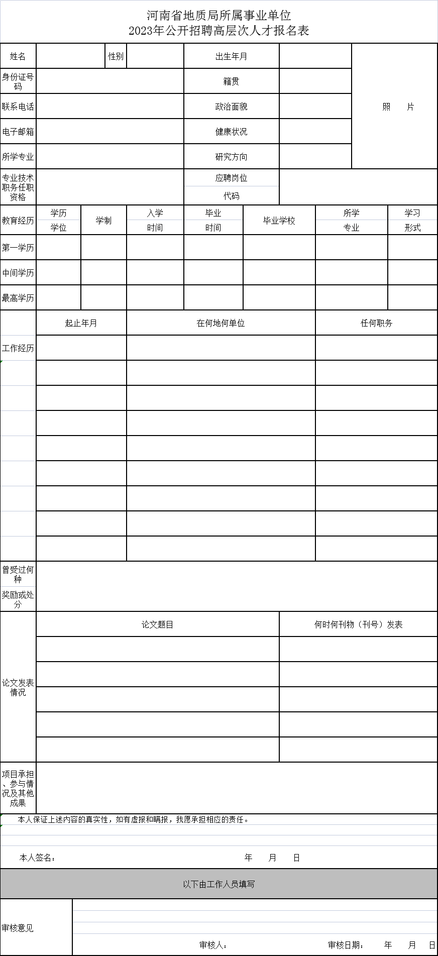 2.《河南省地质局所属事业单位2023年公开招聘高层次人才报名表》