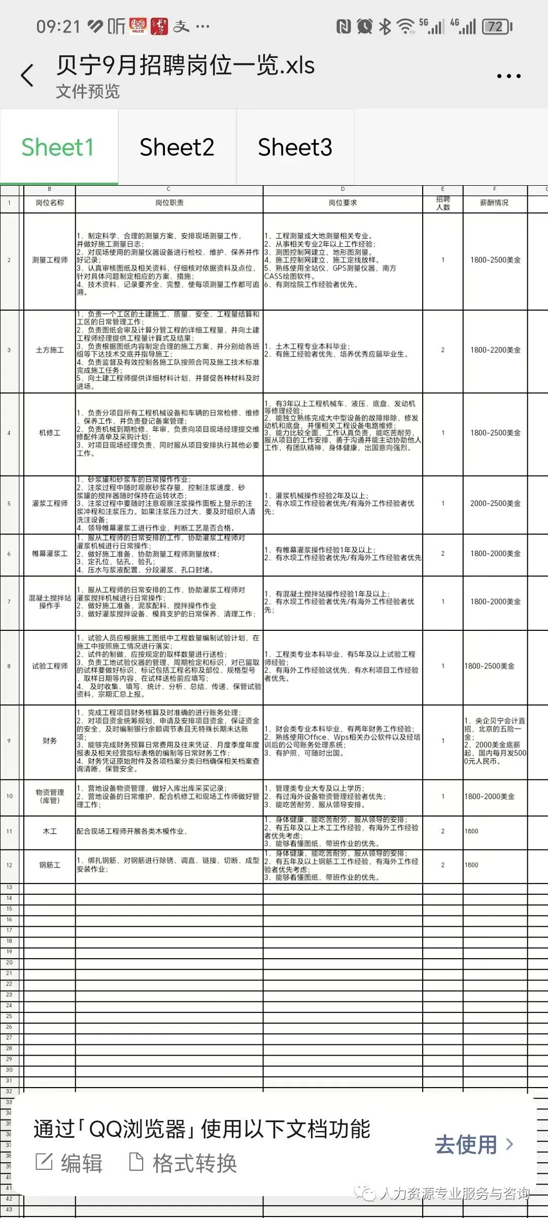 1、土建工程师1人, 熟悉CAD制图、能单独对结构计量 大专学历 2、土方施工2人,从事内现场施工员优先 3、木工2人 4、钢筋工2人 5、机修1人,设备工程专业(大专以上),从事机械设备维修工作5年以上 6、灌浆工程师1人,熟练操作灌浆记录仪及进行内页整理等 7、帷幕灌浆工2人 8、搅拌站操作员1人 9、试验、测量工程1人 底薪1800-2200美金,合同期两年,工作满18个月回国休假,购买社保,意外险,每月发放国内基本工资5000-8000元人民币左右,其余回国时一次性发放,免费提供食宿,有意向请联系湖南国湘人力资源劳务责任有限公司彭经理,手机微信:15873196231