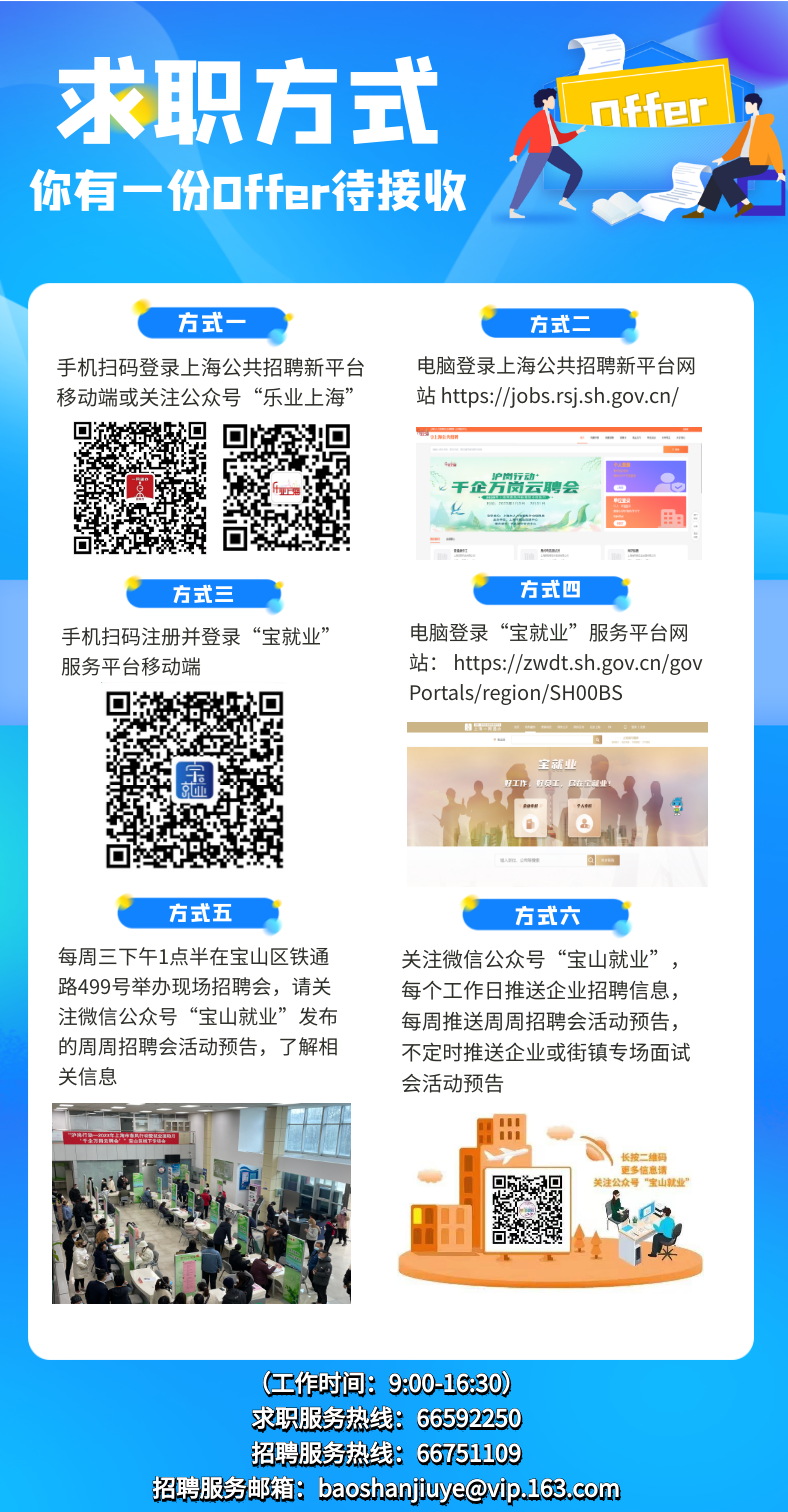 ![]() 上海无穹大信息技术有限公司 企业简介 ![]() 上海无穹大信息技术有限公司是一家集高科技产品研发、生产、销售与一体的高新技术企业。公司发明专利25项、软件著作权100多项。专业从事北斗定位、GPS、 智能视屏、ADAS\DSM\RFID技术、无线射频技术、网络工程的研发和应用等高科技项目。经过十多年的成长,无穹大已由最初的软件产品实施服务商,历经解决方案提供商阶段,发展为企业智能化转型综合服务商。无穹大秉承“软件+管理”创新业务模式,为客户提供的优秀智能化产品和先进管理理念,力争成为国内领先的车辆信息化管理解决方案提供商,以智能化推动客户实现高效的经营管理方案! ![]() 岗 位 信 息 ![]() 聘 市场营销 公共招聘新平台职位编号: 20231300585729 公共招聘新平台职位二维码: ![]() 招聘人数:3人 工作内容: 1、依托公司资源与客户进行电话联络、沟通服务内容; 2、根据公司销售目标和计划,运用销售技巧,完成销售任务; 3、代表公司与客户洽谈业务,并签订销售服务合同,负责合同的执行与协调工作,并按规定收取合同款; 4、收集国家及地方政策,行业方向,市场信息等,定期进行市场分析; 5、收集潜在客户和新客户的资料,与重要客户保持经常联系,为销售工作做准备。 任职要求: 1、中高职及以上学历,市场营销或经济管理,计算机、电子、通信类相关专业优先考虑; 2、能吃苦耐劳,有工作责任心和团队协作精神; 3、具有较强的沟通交际能力,良好的客户服务意识; 4、办公软件运用熟练; 5、能力优秀者可适当放宽要求。 薪资待遇:5000-10000元/月 工作区域:宝山区同济路 聘 技术安装 公共招聘新平台职位编号: 20231300579808 公共招聘新平台职位二维码: ![]() 招聘人数:3人 工作内容: 1、负责售前技术支持,配合销售人员作售前产品技术讲解,演示; 2、运程、现场技术支持; 3、车载产品安装调试; 4、软件平台安装调试; 5、网络环境搭建和服务器配置; 6、负责区域售后技术支持。 任职要求: 1、中高职及以上学历,汽车、电工、监控相关专业或具相关行业工作经验者优先考虑; 2、对车载GPS或北斗卫星定位系统和视频监控系统有简单了解; 3、学习和动手能力强,经培训后能快速熟悉设备安装、调试及维护的基本要领; 4、有团队合作精神,良好的表达和沟通能力,良好的心理素质与承受能力; 5、该岗位为外勤,有驾驶证优先考虑。 薪资待遇:4000-8000元/月 工作区域:宝山区同济路 聘 售后服务 公共招聘新平台职位编号: 20231300585178 公共招聘新平台职位二维码: ![]() 招聘人数:3人 工作内容: 1、接听客户来电和处理平台的在线咨询,提供满意的售后服务; 2、确认客户的需求并及时处理,提供解决方案并跟进处理进度; 3、做好故障报修记录,汇总和反馈客户反馈信息; 4、协调公司内部各部门,为客户供更优质的服务,提高公司整体服务水平。 任职要求: 1、中高职及以上学历,商务、市场营销、电子商务等相关专业优先考虑; 2、具有良好的沟通技巧和客户服务意识,能够积极主动地处理客户问题和投诉,保持良好的客户关系; 3、具有较强的团队协作能力和工作责任心,能够积极响应公司安排并完成工作任务; 4、具备较强的抗压能力和自我管理能力,能够承受工作压力并独立完成本职工作。 薪资待遇:4000-6000元/月 工作区域:宝山区同济路 应聘方式 方式一: 应聘者可以长按职位二维码直接投递简历 方式二: 联系人:袁老师 联系方式:18016072627 想找工作的小伙伴 请按以下方式获取更多岗位信息 ![]() |