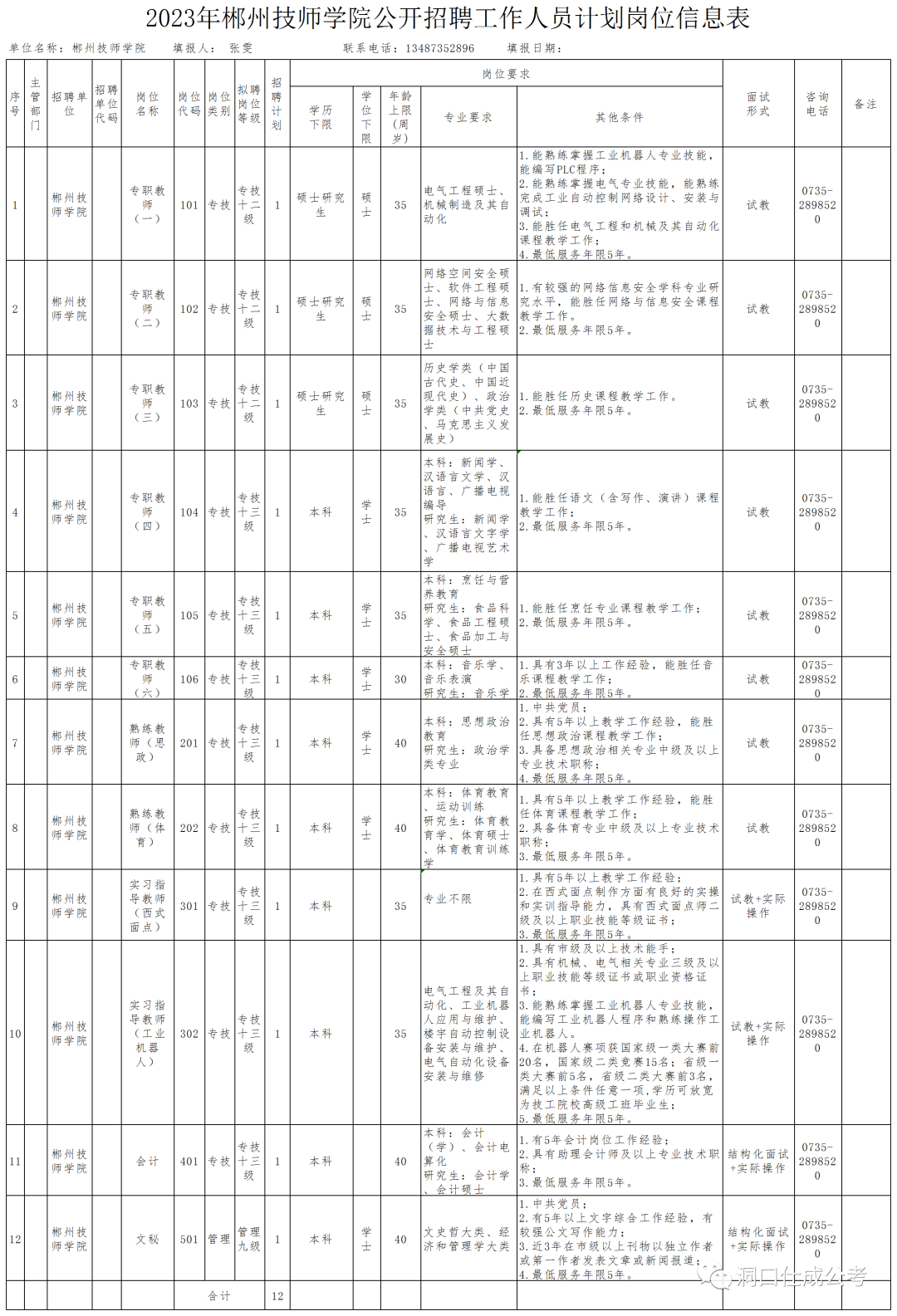 ![]() ![]() ![]() 仕成公考 专注邵阳本土机构,口碑好,通过率高 值得信赖! 先后邵阳市洞口县、隆回县、武冈市、怀化市等地开班,和众多高校达成学历提升合作,2013年至今培训公职考试学员2000多人。培训学历提升学员400多人。近年来培训学员整体上岸率高达85%。 根据《事业单位人事管理条例》(国务院令第652号)、《湖南省事业单位公开招聘人员办法》(湘人社发〔2019〕1号)和《关于进一步改进事业单位公开招聘工作的通知》(郴组〔2016〕11号)等文件精神,郴州技师学院2023年面向社会公开招聘工作人员,现公告如下: 一、单位简介 郴州技师学院于2009年经省政府批准设立,是由郴州市人民政府主办的全额财政拨款事业单位。学院占地面积308亩,总建筑面积近15万平方米,现有在校学生7000余人,教职工376人。其中,正高职称教师2人,副高职称教师88人。“双师型”教师181人,“一体化”教师达176人,湖南省首席百佳技师5人,有23名教师分别获得省、市“技术能手”荣誉称号。学院拥有先进的教学设施和配套的实训设备,各类实训室共112间,工位数6268个,有省级大师工作室2个,市级大师工作室2个。设有智能制造系、汽车工程系、信息工程系、经贸管理系、旅游管理系、工艺美术系、基础教育部等“六系一部”,开设22个专业。先后被确定为国家重点技工院校、国家级高技能人才培训基地,湖南省首批优质技工院校;荣获全国职业教育先进单位、全国农村青年转移就业先进单位、湖南省技工院校招生就业先进单位、湖南省技工教育培训研究与教材建设先进单位、湖南省文明标兵校园等荣誉称号。 二、招聘岗位计划 计划招聘12名工作人员。具体招聘岗位、计划数及资格条件等详见《2023年郴州技师学院公开招聘工作人员计划岗位信息表》(附件1,以下简称《岗位信息表》)。相关事宜可通过以下指定官方网站查阅:郴州市人力资源和社会保障局门户网站(http://czrsj.czs.gov.cn)、郴州人力资源考试网(http://61.187.189.252)。 三、报考条件 (一)报考人员条件 1.具有中华人民共和国国籍; 2.遵守中华人民共和国宪法和法律; 3.具有良好的品行和职业道德; 4.适应岗位要求的身体条件; 5.具备岗位所需的年龄、学历(学位)、专业或技能等条件,详见《岗位信息表》: (1)报考年龄要求详见《岗位信息表》(如年龄要求在30周岁以下的,即在1992年9月20日后出生,其他情形依此类推)。 (2)报考人员的学历(学位)必须为国家承认的学历(学位)。结业证书、肄业证书不符合要求。技工院校中级工班、高级工班、预备技师(技师)班毕业生,可以分别按照中专、大专、本科学历同等对待,对有疑义的国民教育学历(学位),以省以上教育行政部门认定的结果为准;对有疑义的党校学历(学位),以省委组织部协调相关业务主管部门认定的结果为准。 (3)报考人员的专业应严格按照毕业证书的专业填写。报考专业参考《湖南省2023年考试录用公务员专业指导目录》及《全国技工院校专业目录(2022年修订)》。所学专业已列入上述目录但未列入公开招聘岗位专业的,不符合报考条件;所学专业未列入上述目录的,由郴州技师学院党委根据报考人员所学专业领域方向研究决定。 (4)报考人员的学历(学位)证书、国(境)外留学人员学历认证和招聘岗位要求的其他证书须在2023年8月31日前取得。未按时取得的,资格审查不合格。 6.岗位要求中的工作经历、资格、职称等计算时间,均截止至2023年8月31日,年限按足年足月计算。未取得全日制本科、研究生毕业证前的实习、见习时间等均不计算工作经历时间。全日制普通高校在读期间(含国外留学学习期间)的实习、兼职、参加社会实践等不能计算为工作经历时间。 (二)不得报考的情形 1.曾因犯罪受过刑事处罚的人员或曾被开除公职的人员; 2.尚未解除党纪、政纪处分或正在接受纪律审查的人员; 3.涉嫌违法犯罪正在接受司法调查尚未作出结论的人员; 4.被依法列为失信联合惩戒对象的人员; 5.现役军人; 6.截至2023年8月,根据相关规定公务员(含参公)未满服务年限的; 7.截至2023年8月,与现所在机关事业单位约定试用期未满的或签署了服务年限协议且期限未满的; 8.普通高校在读全日制学生(在读的全日制研究生不能以本科等学历报考,其他情形依此类推); 9.报考人员不得报考聘用后即构成应回避关系的招聘岗位; 10.法律、政策规定不得聘用为事业单位工作人员的其他情形的人员。 四、招聘程序 公开招聘工作按照报名、笔试、资格审查、面试、体检、考察、公示、聘用等程序进行。 (一)报名 1.报名方式。本次报名采取网络报名方式(不组织网上资格审查),不收取报名费。报考人员只能选择一个岗位报名,报名后,不得更改个人信息和报考岗位。报名与考试必须使用在有效期内的二代身份证件。 2.报名时间。报名时间为2023年9月25日9:00-9月28日17:00。 3.报名网址。郴州人力资源考试网(http://61.187.189.252)。 4.上传照片。报名时,报考人员上传本人近期免冠2寸正面电子照片(295*413像素, jpg格式,20KB以下)。 5.打印准考证。自10月12日9:00起报考人员自行到报名网站打印笔试准考证。 6.报考注意事项: (1)报考人员须认真对照《岗位信息表》,根据自身条件,正确选择合适岗位,谨慎准确填报本人报名信息。 (2)需咨询招聘岗位专业、学历(学位)及其他条件的,请直接联系郴州技师学院。 (3)笔试最低